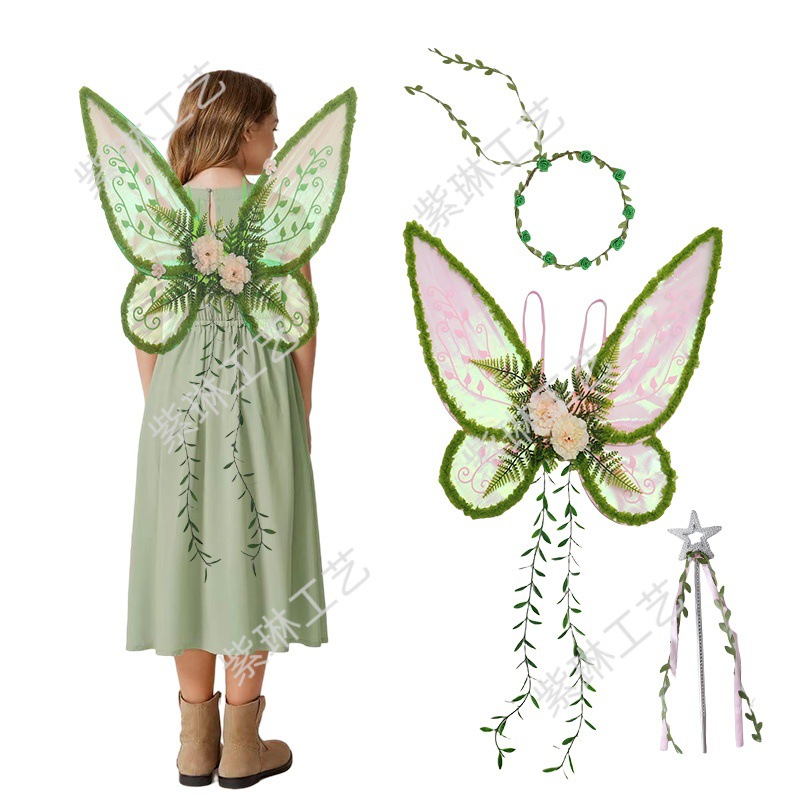 紫琳2025新品跨境节日派对COS装扮蝴蝶翅膀背饰树叶精灵装饰翅膀