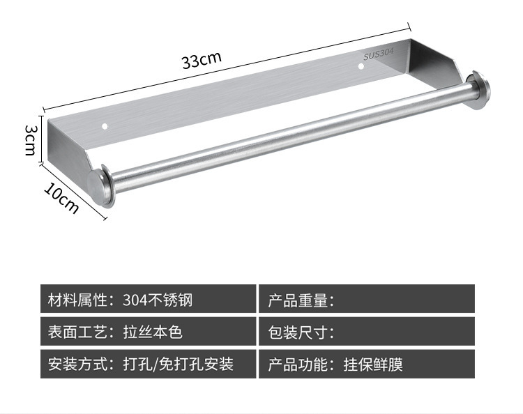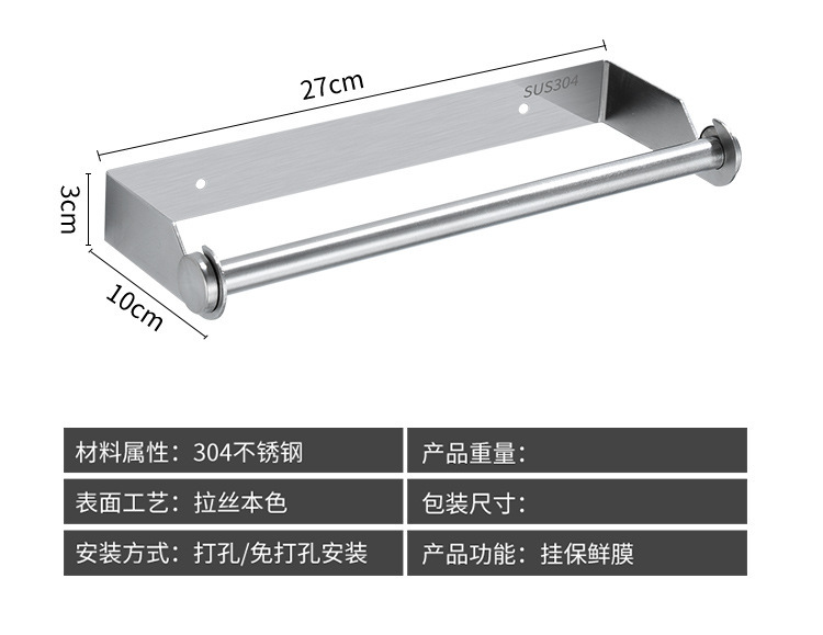 厨房纸巾架304不锈钢保鲜膜架卷纸架餐巾纸置物架收纳架厂家直销