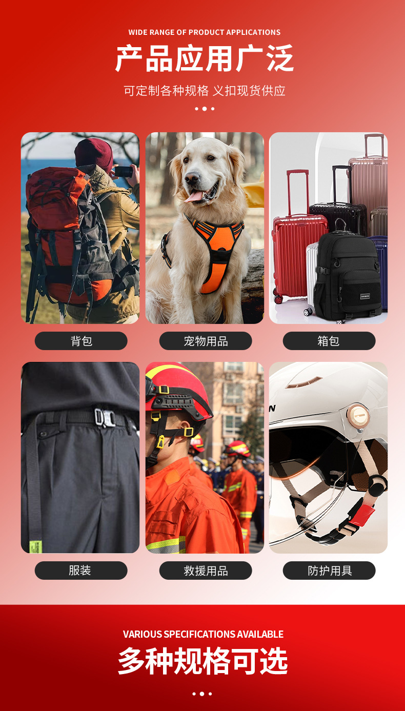 メーカー既製バッグ、日本製バックル、3段階調整バックル、バックルバックル、マルチ仕様、マルチカラープラスチックバックル卸売