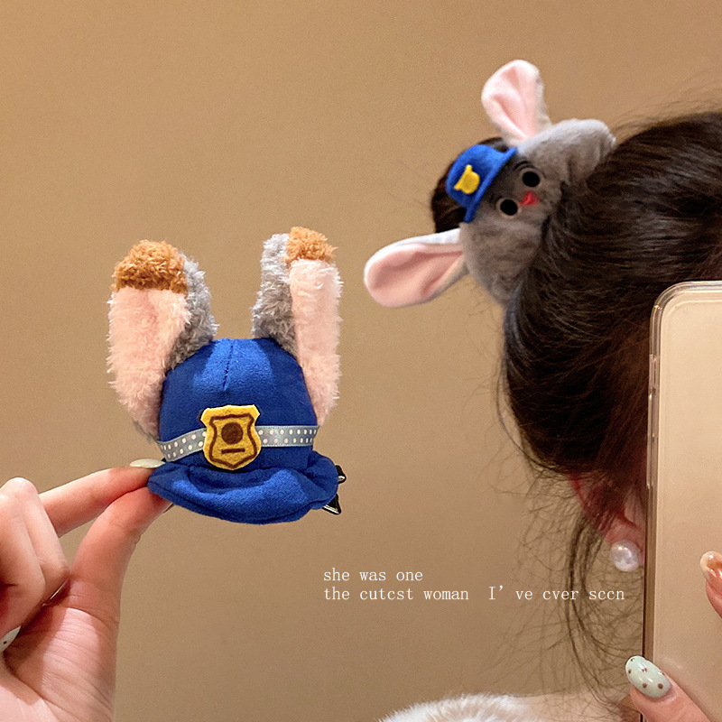 新款可爱朱迪兔子帽子发夹边夹侧边发卡女卡通甜美拍照道具头饰