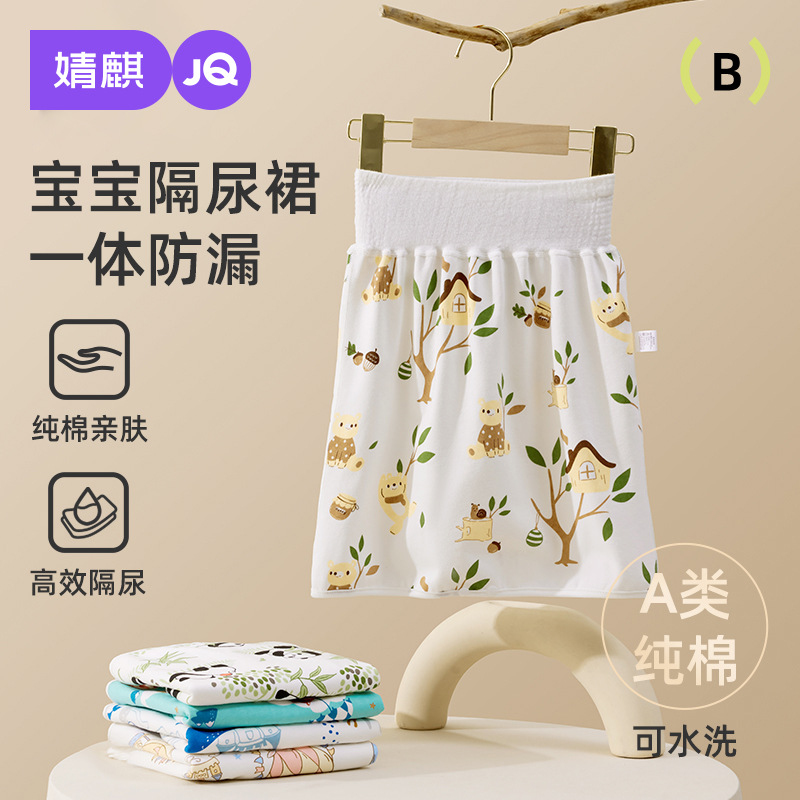 婧麒宝宝隔尿裙透气防水可洗训练隔尿裤男宝戒尿不湿隔尿神器儿童