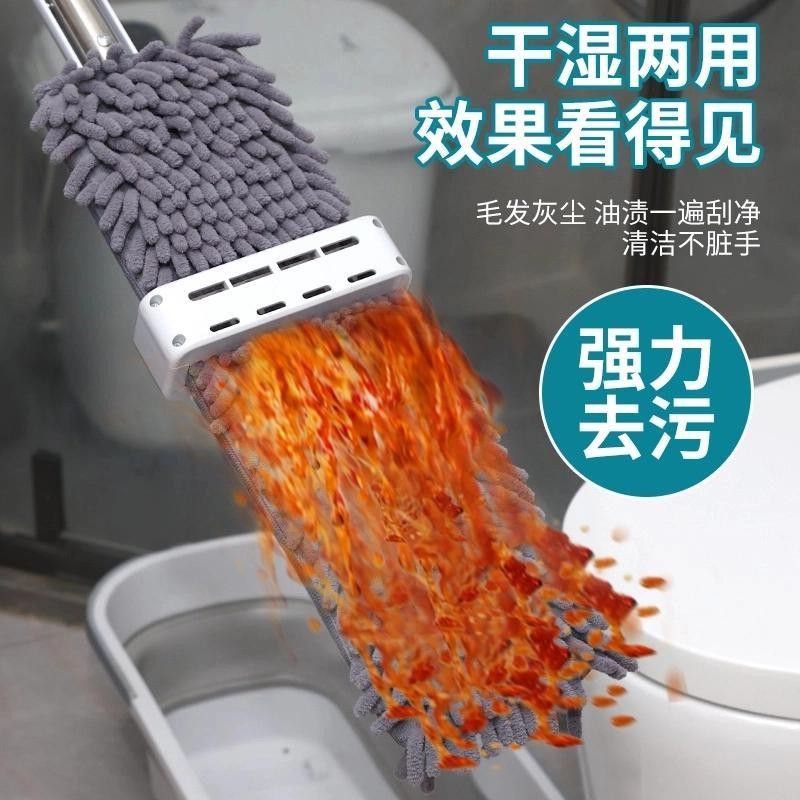 新しいハンズフリーフラットモップシェニール強化モップロングハンドルアルミ合金パネル家庭用スクレーパーモップ
