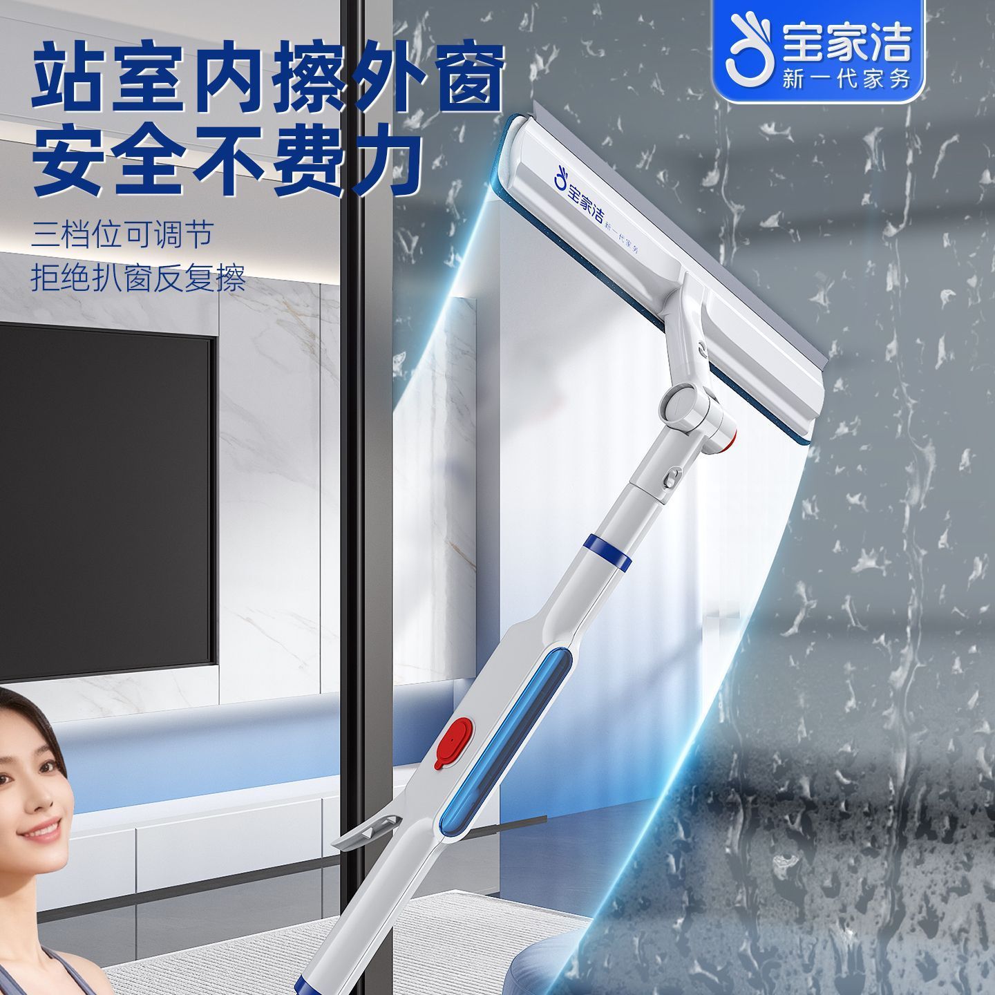 宝家洁擦玻璃神器家用高层专用保洁刮水器2025新款擦窗户清洁工具