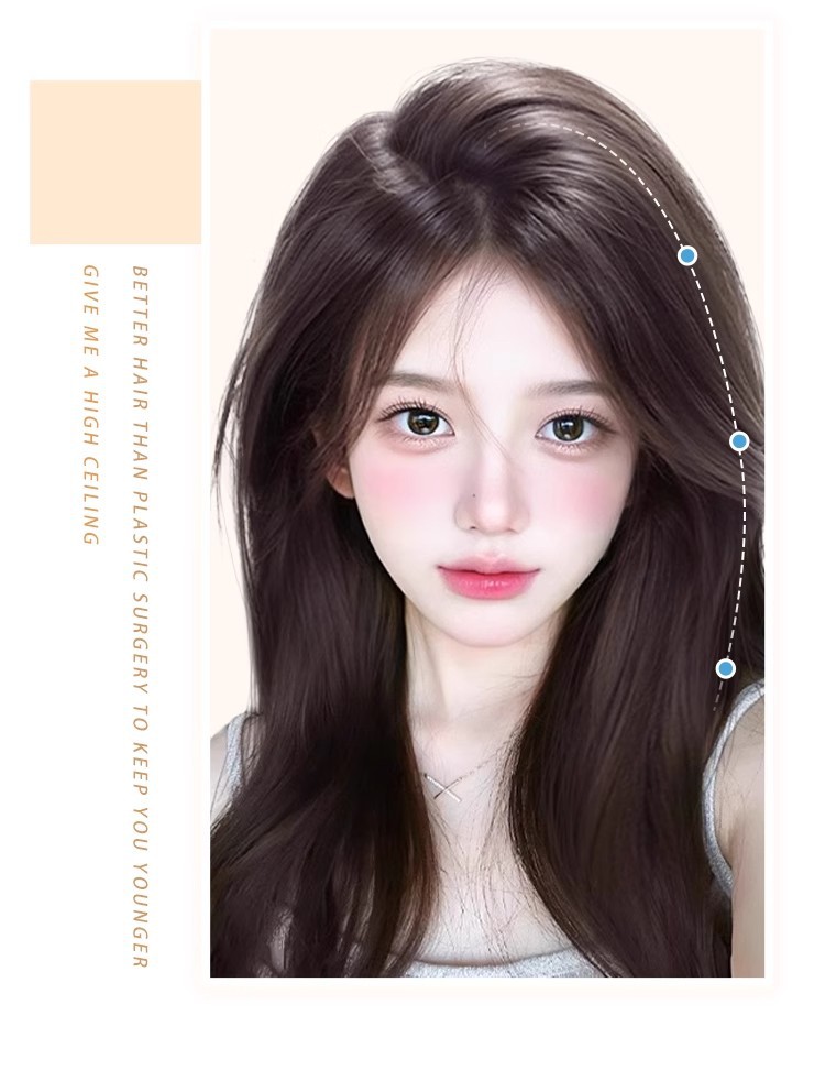 八の字の前髪のシミュレーションの髪の女性の頭の頂の再髪の増発量は自然でふんわりしています。