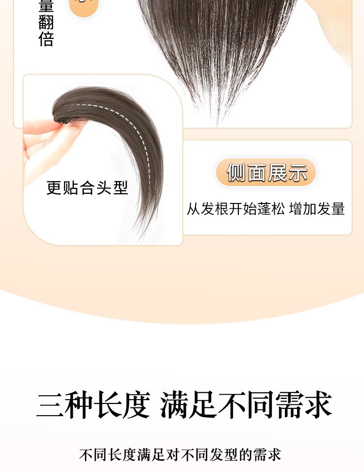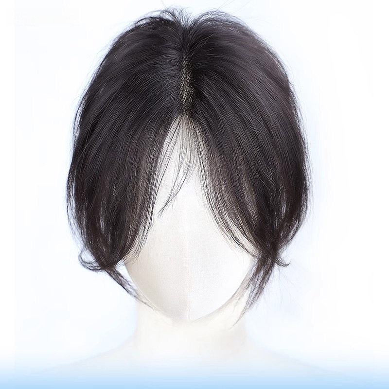 高颅顶假发片女头顶全真人发八字刘海蓬松增发量轻薄透气刘海假发