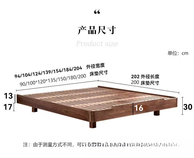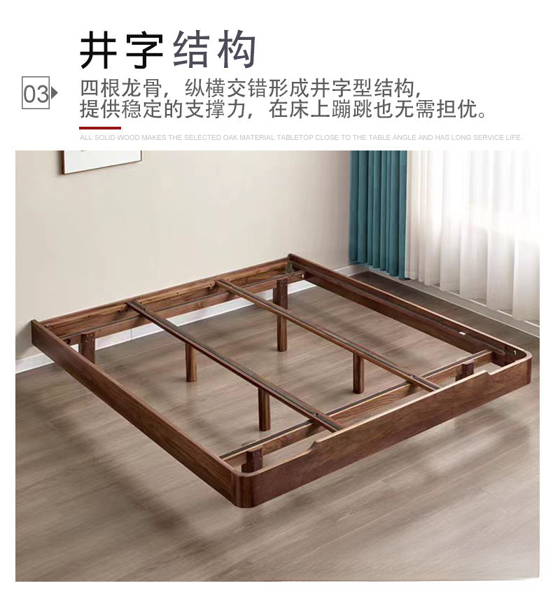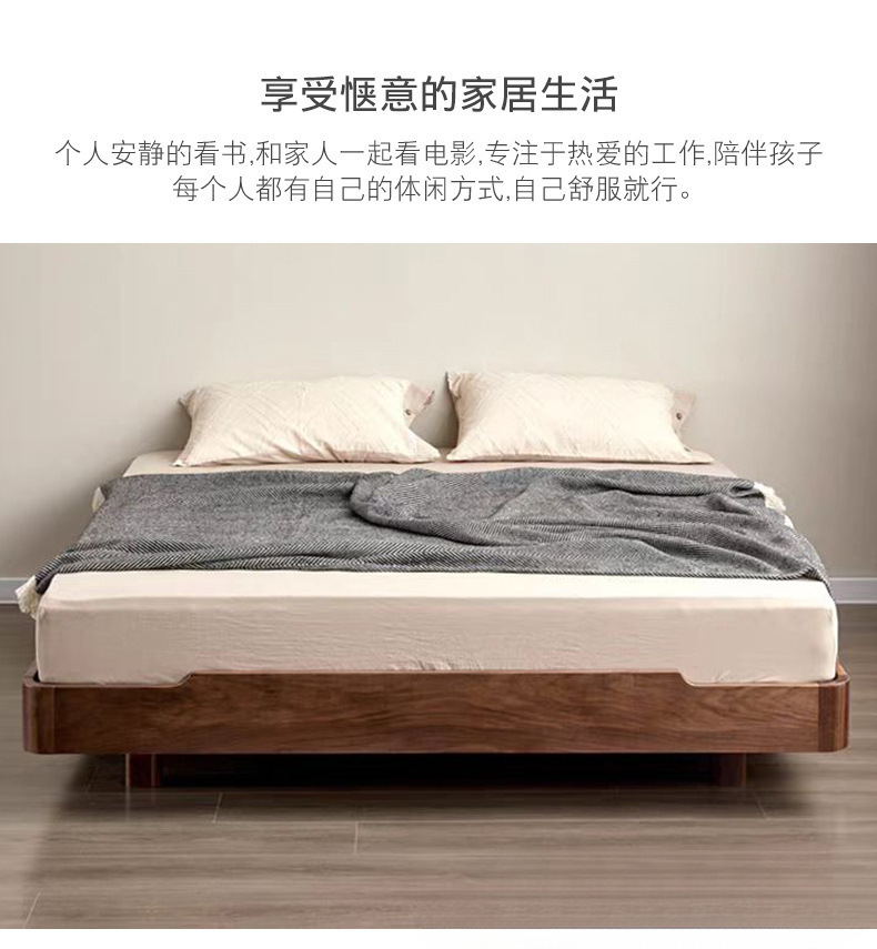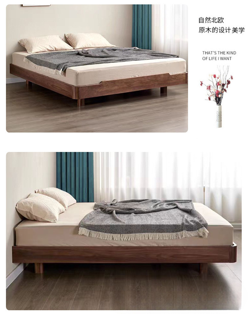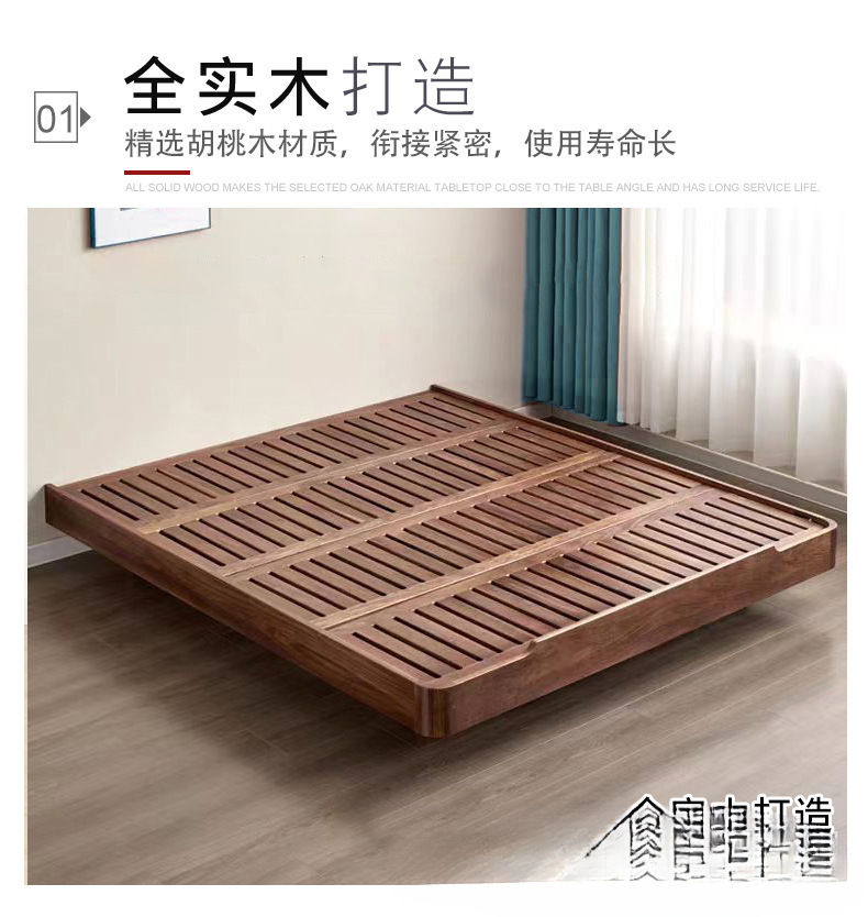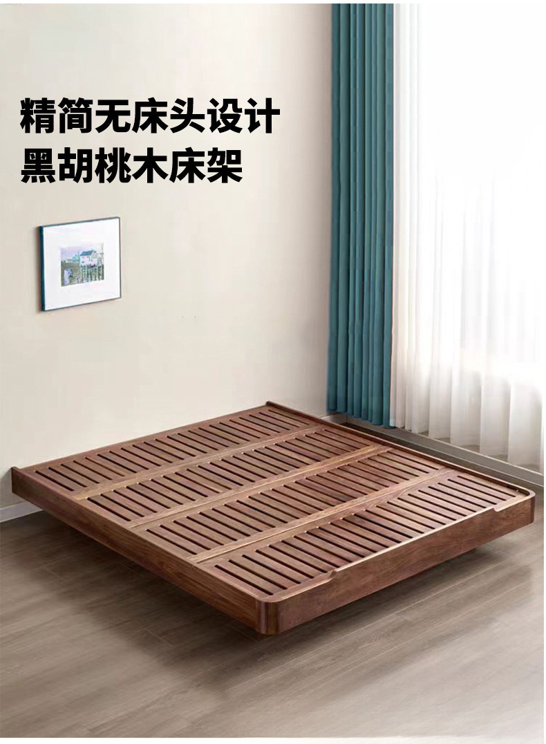 北美黑胡桃木无床头悬浮榻榻米床床全实木床双人架矮床工厂直销
