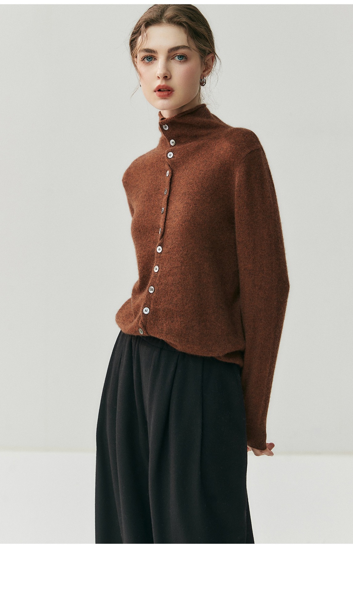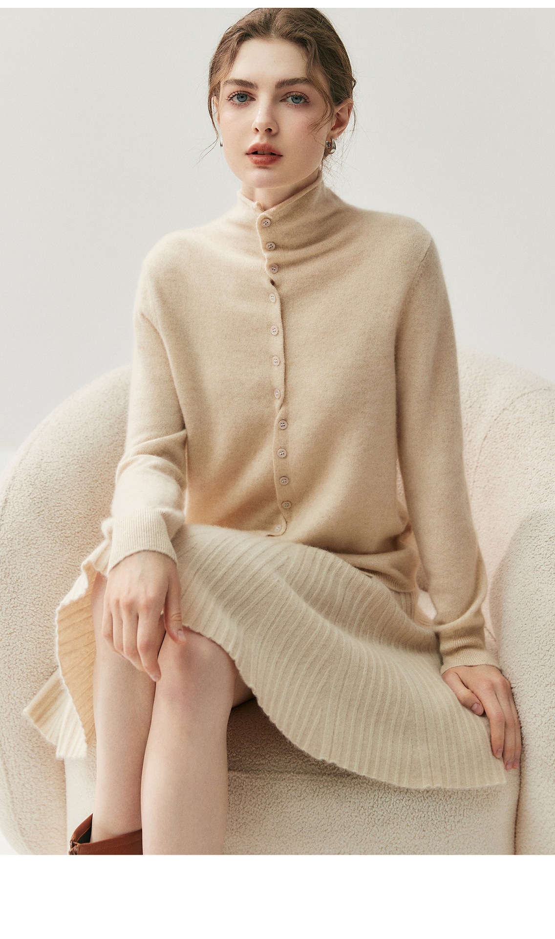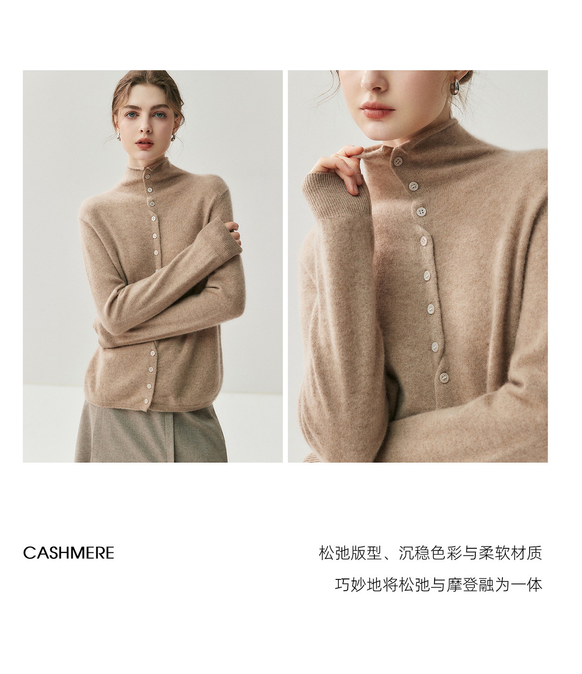 蓬松云朵感羊绒羊毛卷边开衫慵懒感两穿针织衫秋冬女高领毛衣