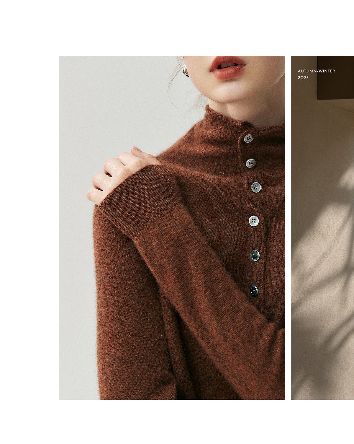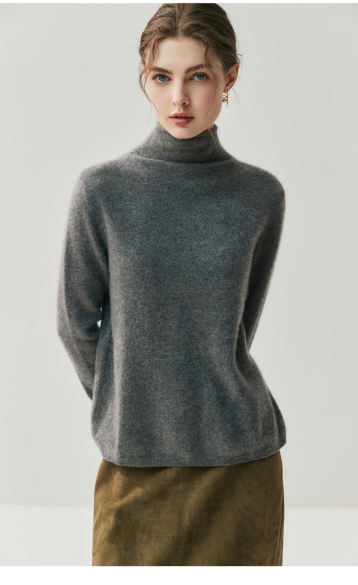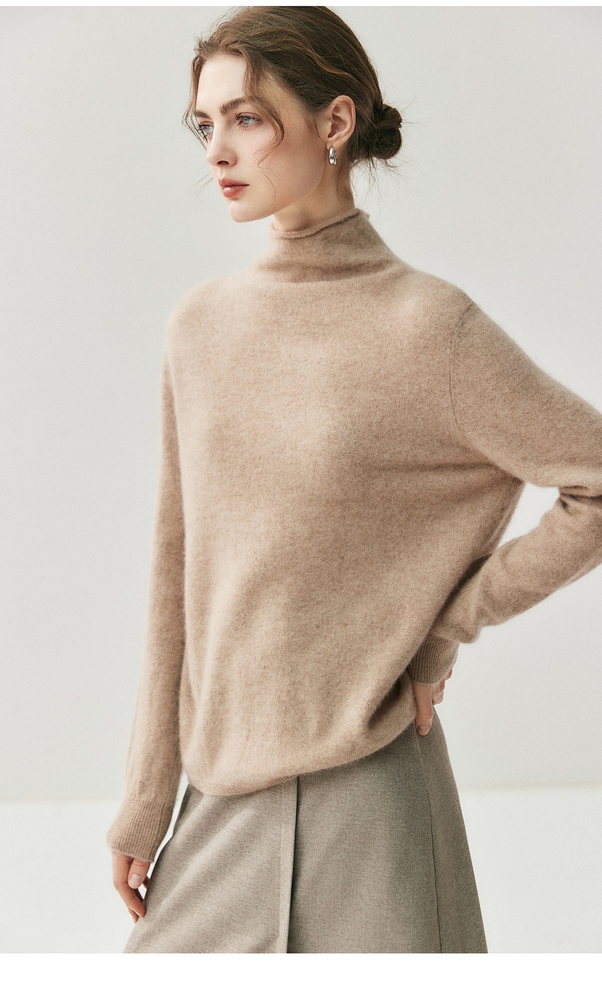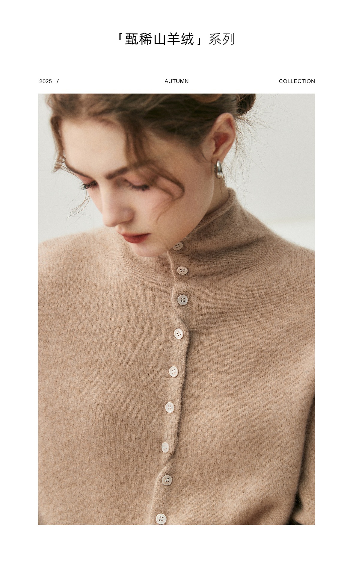蓬松云朵感羊绒羊毛卷边开衫慵懒感两穿针织衫秋冬女高领毛衣