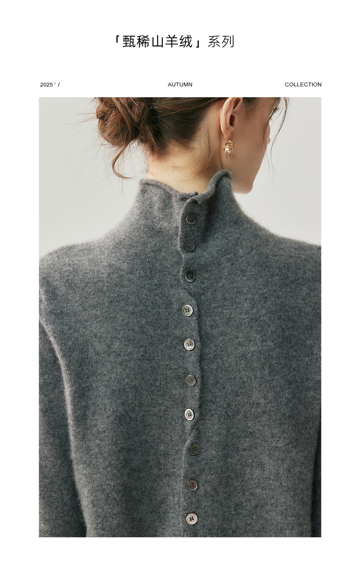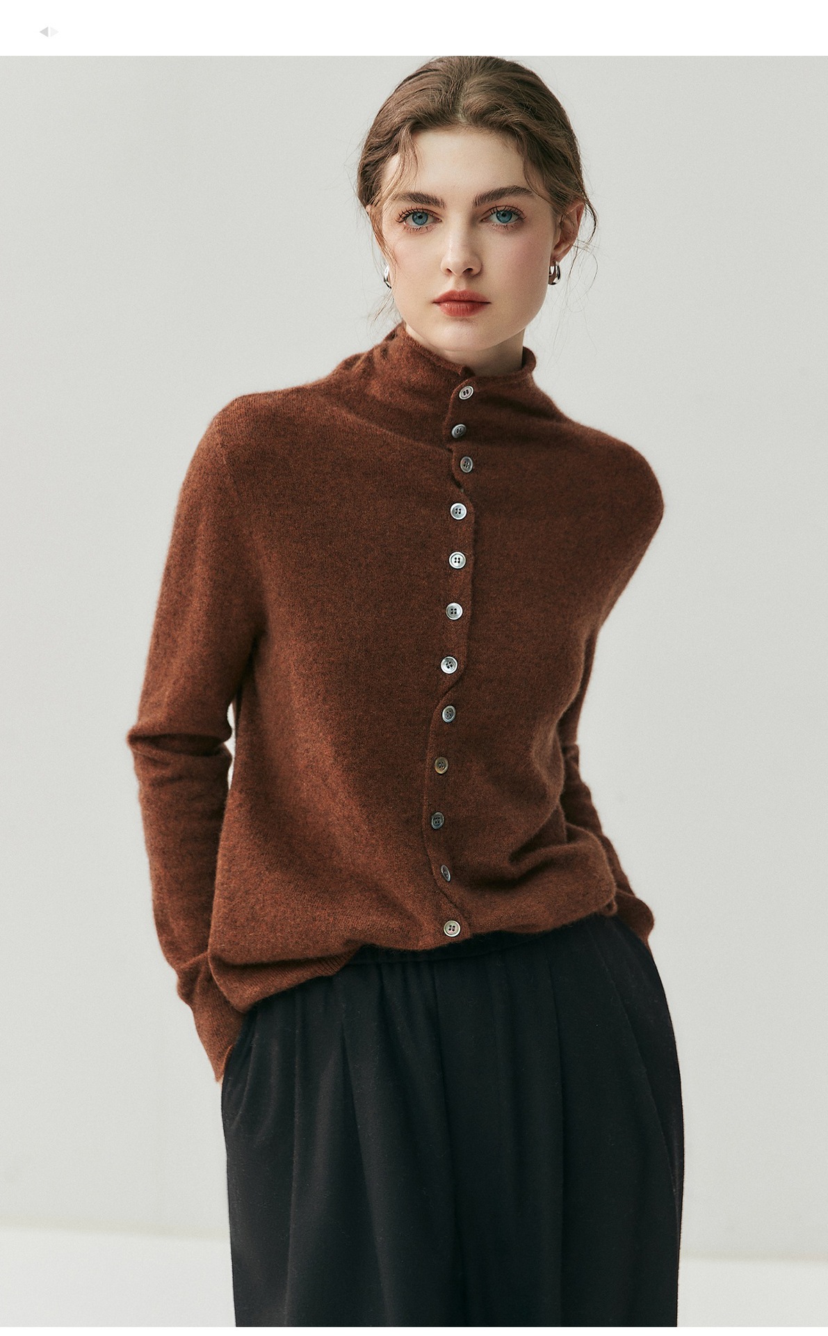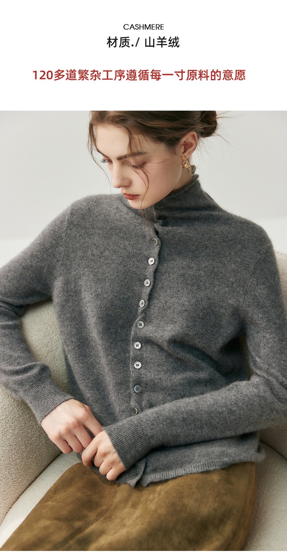 重磅奢品~羊绒开衫女卷边高领前后两穿系扣针织毛衣气质羊毛外套