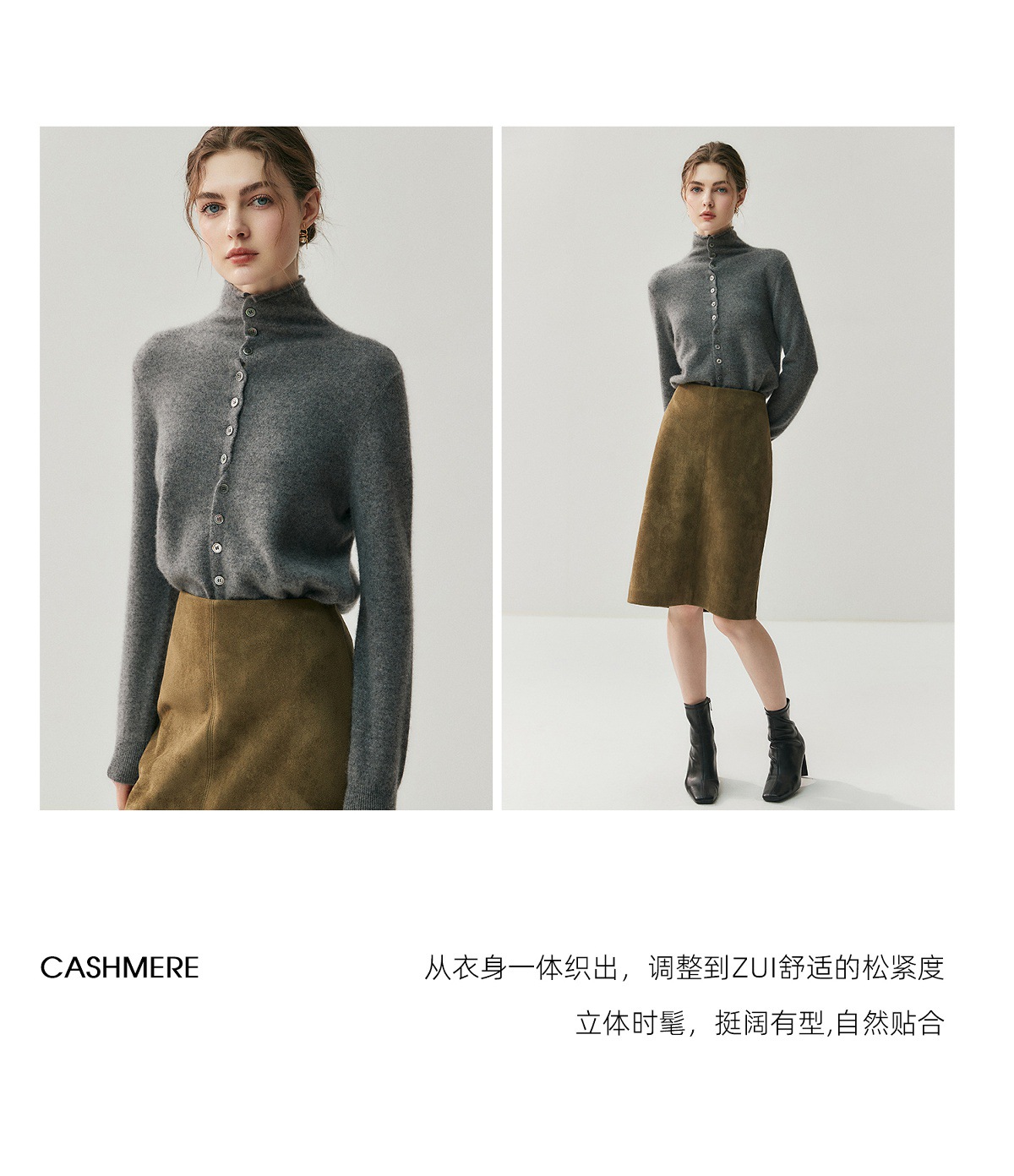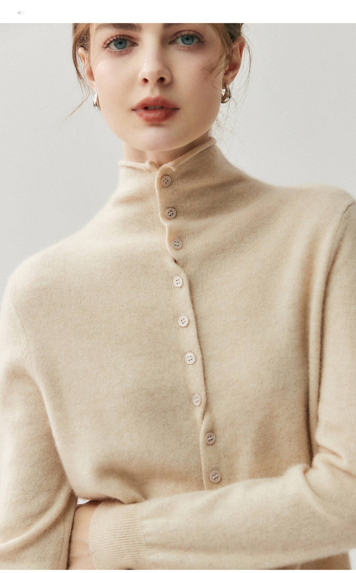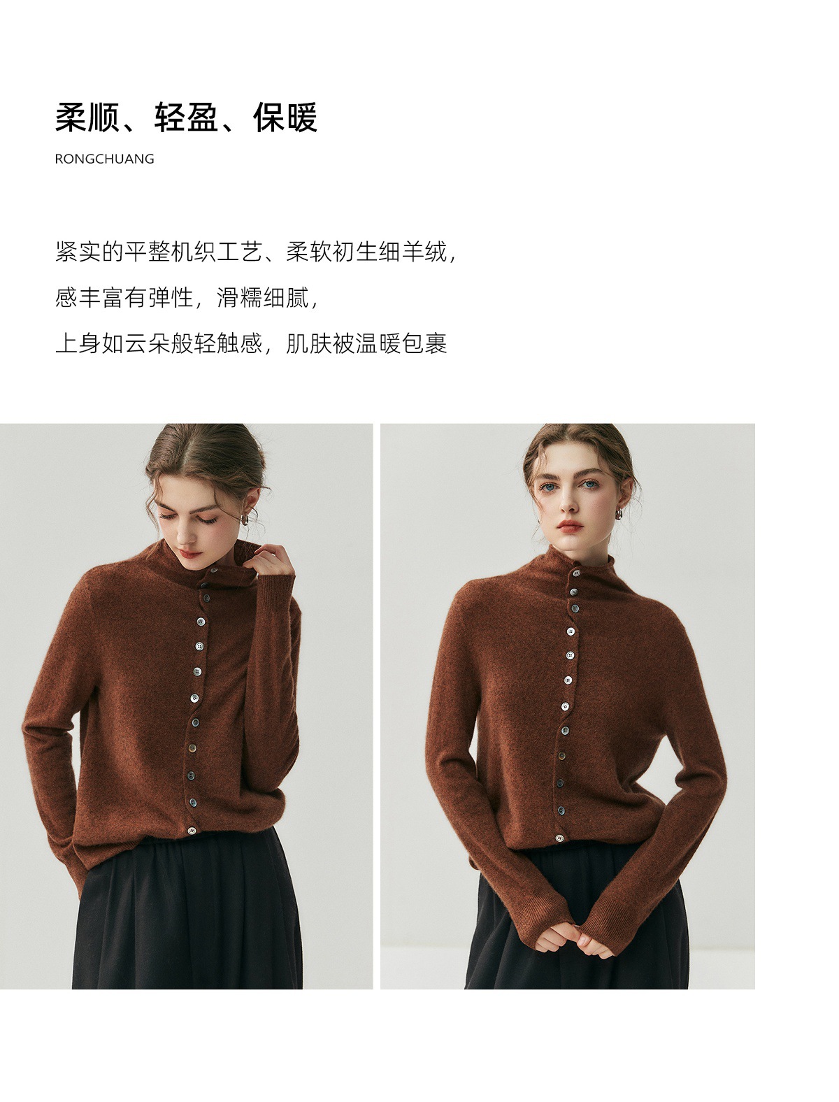 重磅奢品~羊绒开衫女卷边高领前后两穿系扣针织毛衣气质羊毛外套