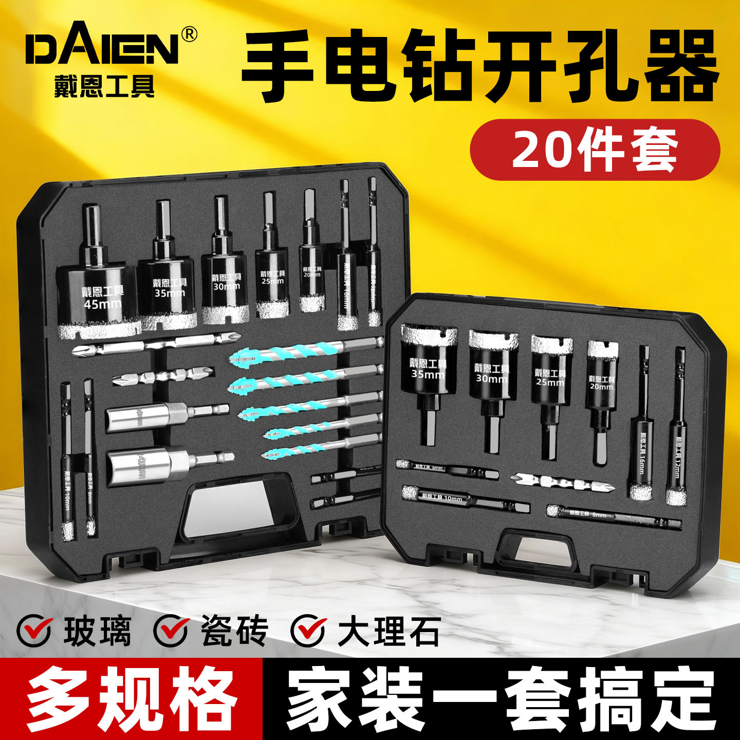 瓷砖开孔器打孔钻头套装手电钻干打大理石钻孔专用石材玻璃打孔器