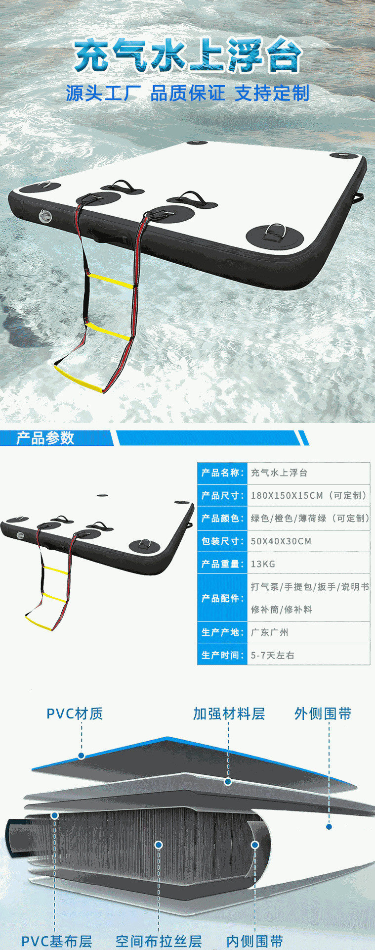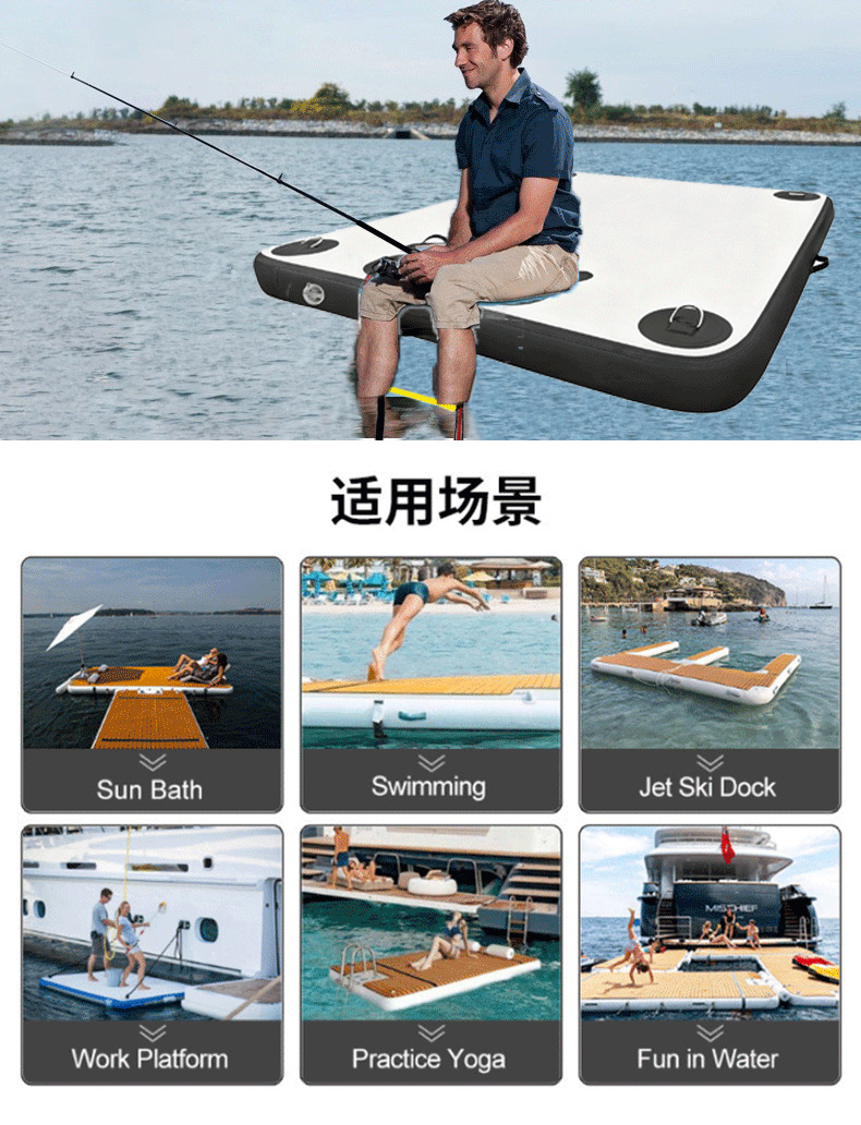 充气钓鱼浮台充气浮床水上充气用品漂浮板充气浮排拉丝便携体操垫