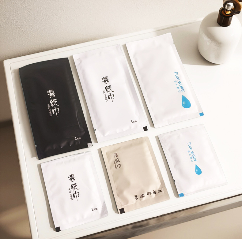 航空食事用使い捨て清潔ウェットティッシュ一枚包装飲食販売商用印刷ロゴ広告ウェットティッシュ