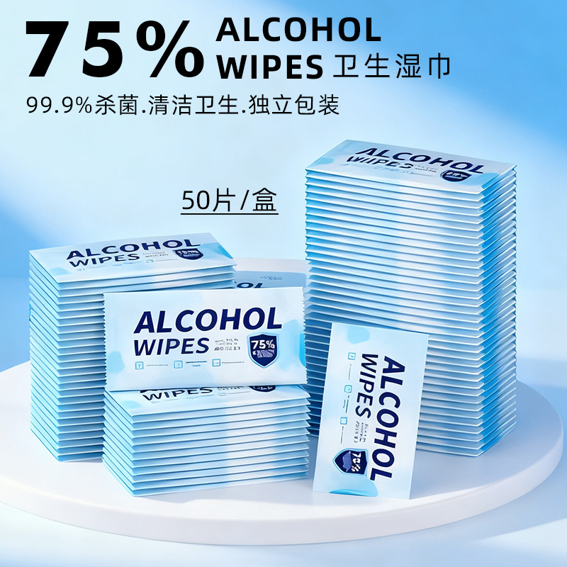 75%アルコール消毒ウェットティッシュ 英語版 シングルパック オフィス・業務用 手拭き用 使い捨て衛生ウェットティッシュ 箱入り 在庫あり
