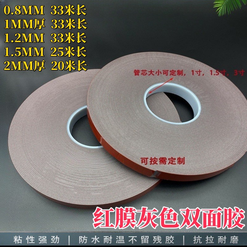 0.8ミリメートル1ミリメートル1.2ミリメートル1.5ミリメートル2ミリメートル厚さ赤膜グレーアクリル両面テープ大巻き