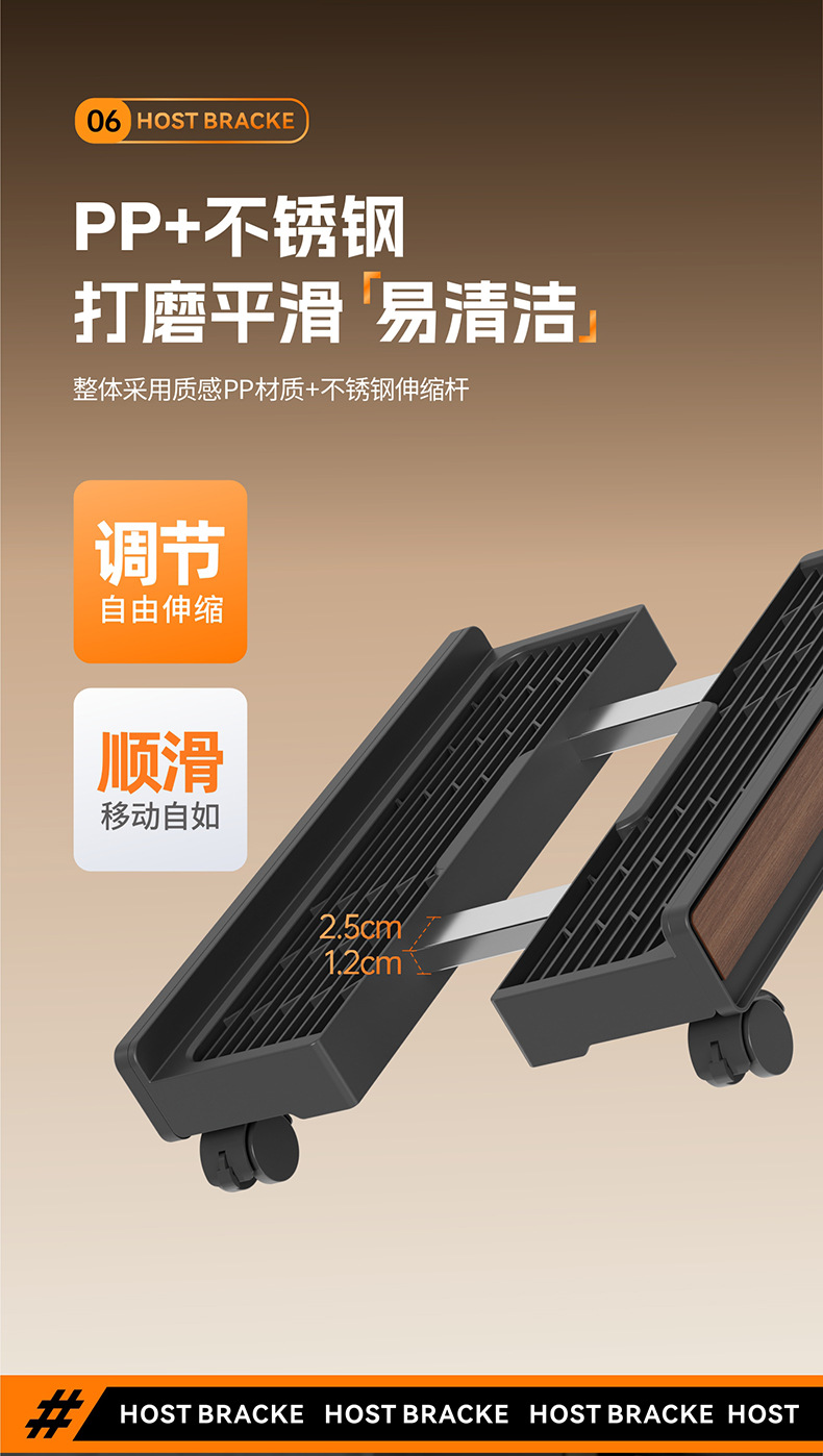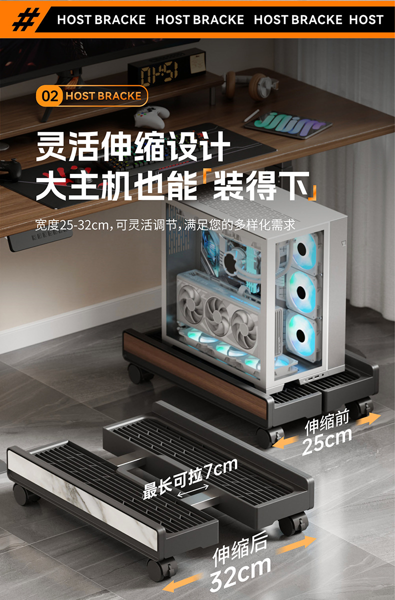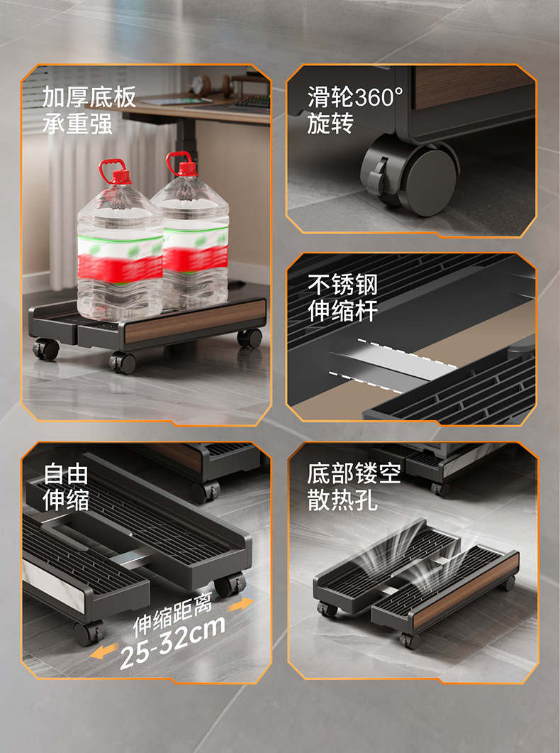 电脑主机托架家用机箱移动带轮底座办公室通用伸缩支架收纳置物架