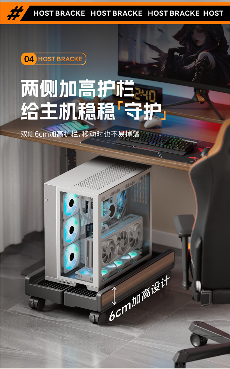 ホストスタンド、コンピュータケース、モバイルプーリーベース、高さ調整ラック、家庭用シンプルeスポーツホスト収納ブラケット