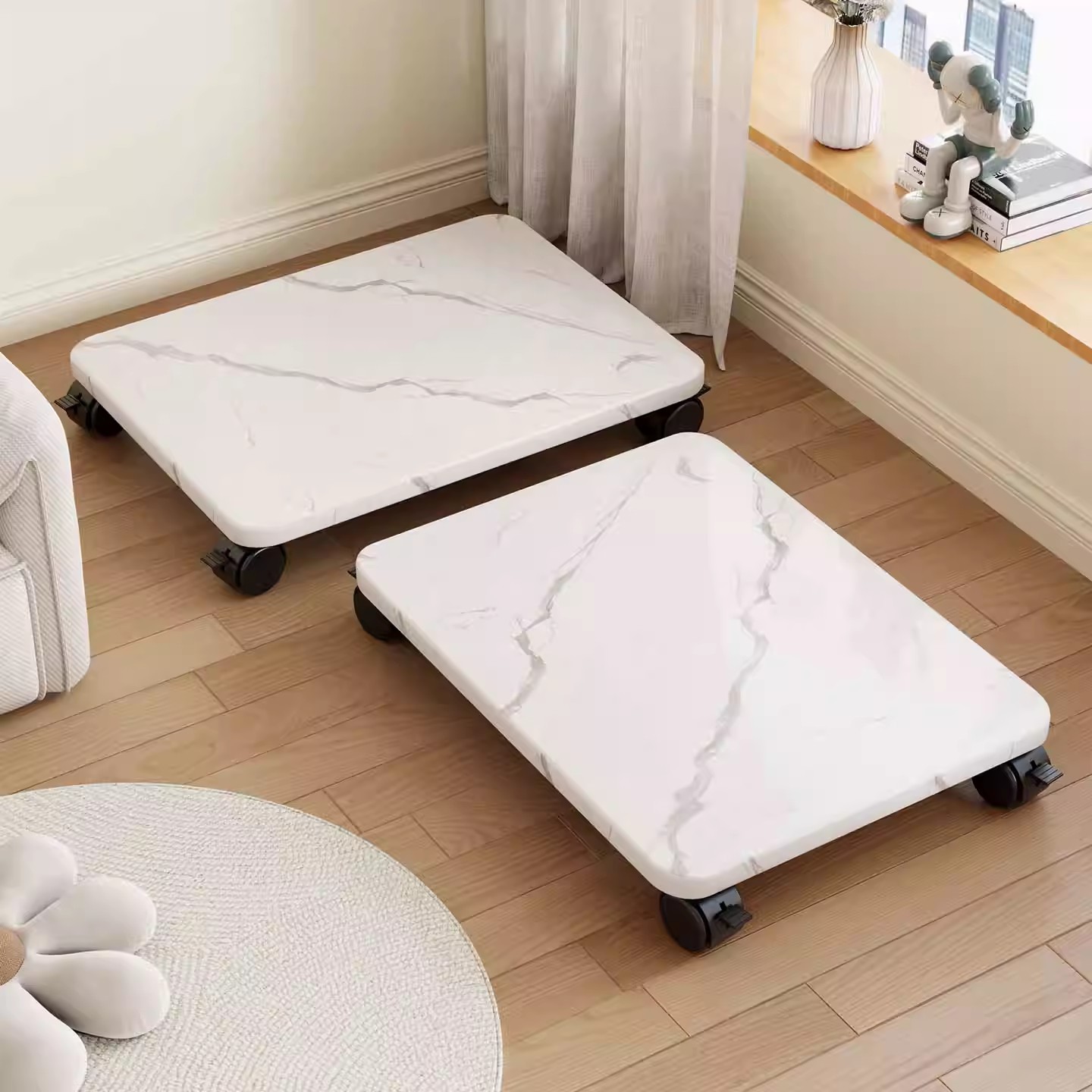 可移动收纳箱底座带滑轮置物架桌下主机托盘花架子带轮打印机托架