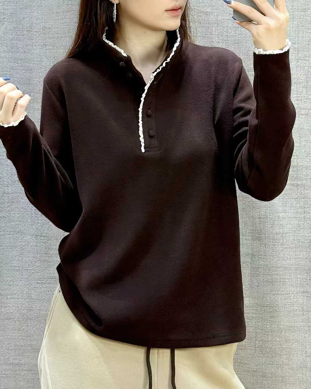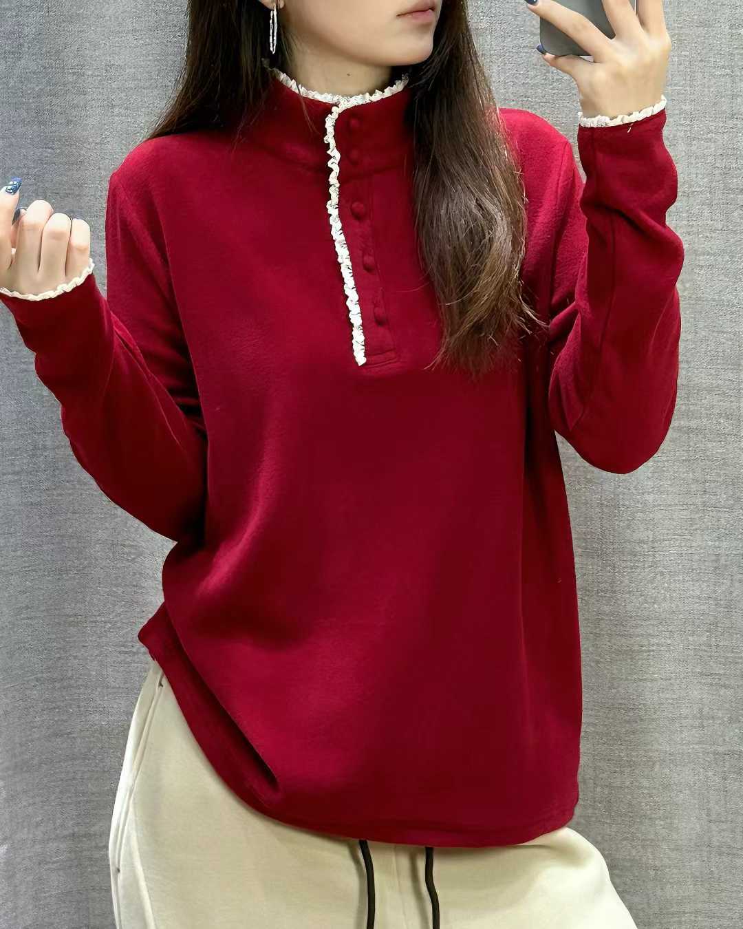 bjl1615韩版时尚蕾丝花边立领德绒保暖内搭上衣秋冬新品百搭卫衣