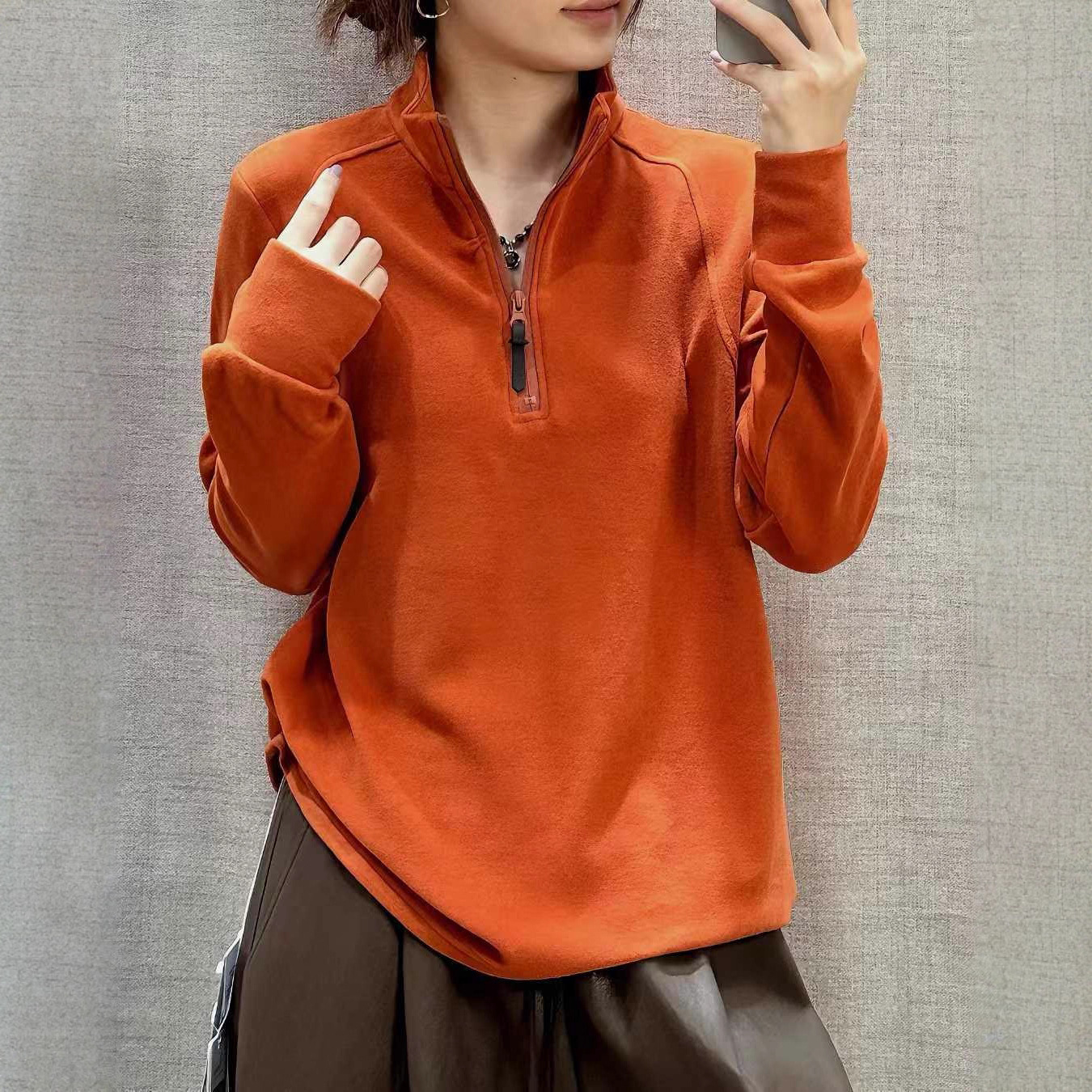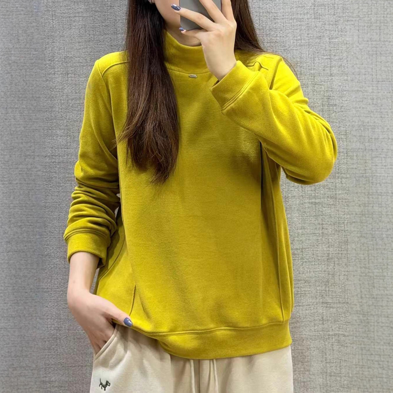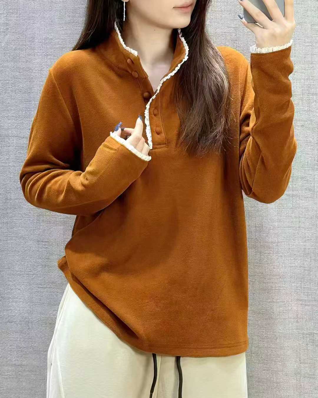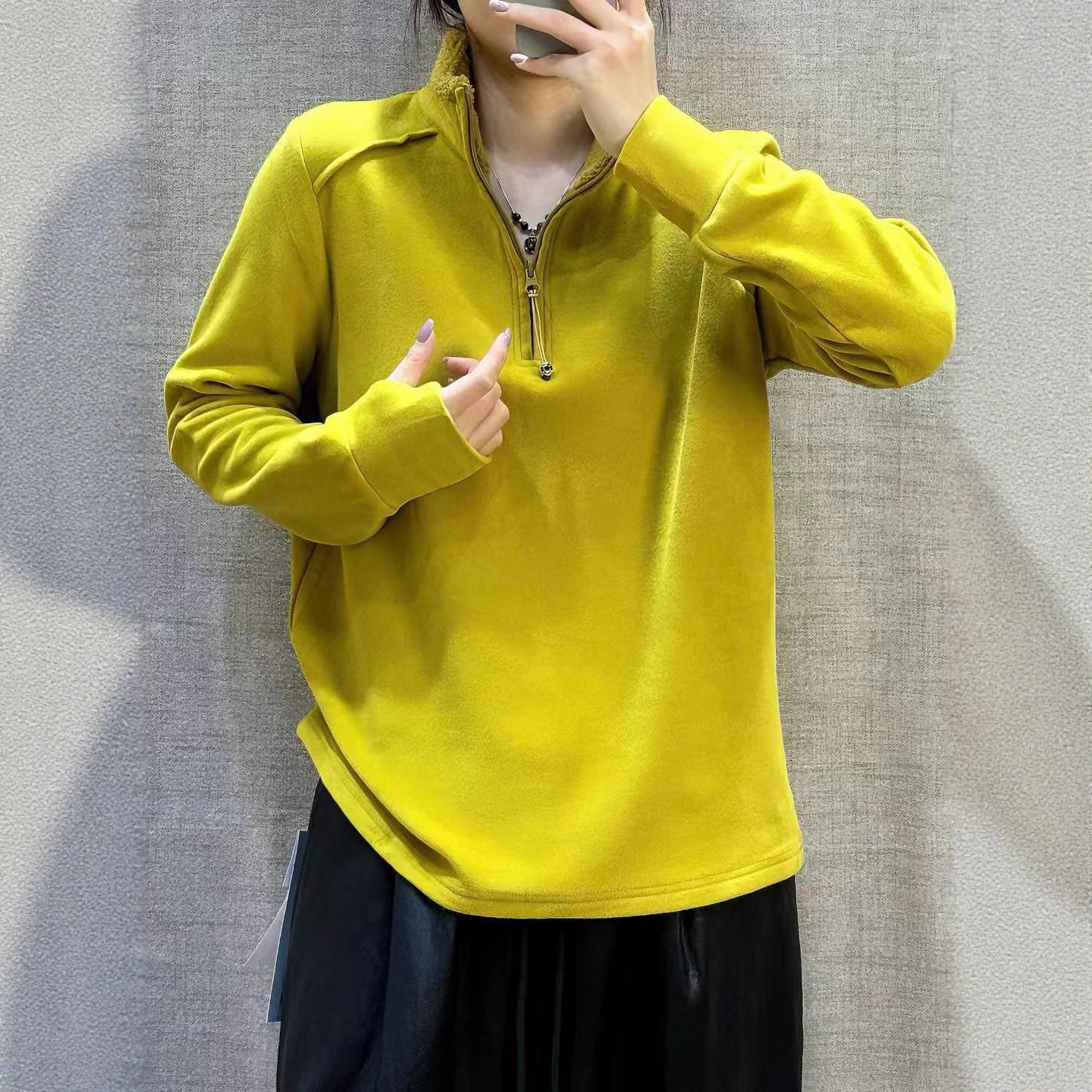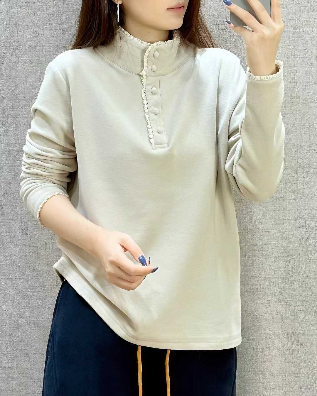bjl1536纯色半拉链休闲内搭T恤卫衣2025秋冬新品文艺舒适打底衫女