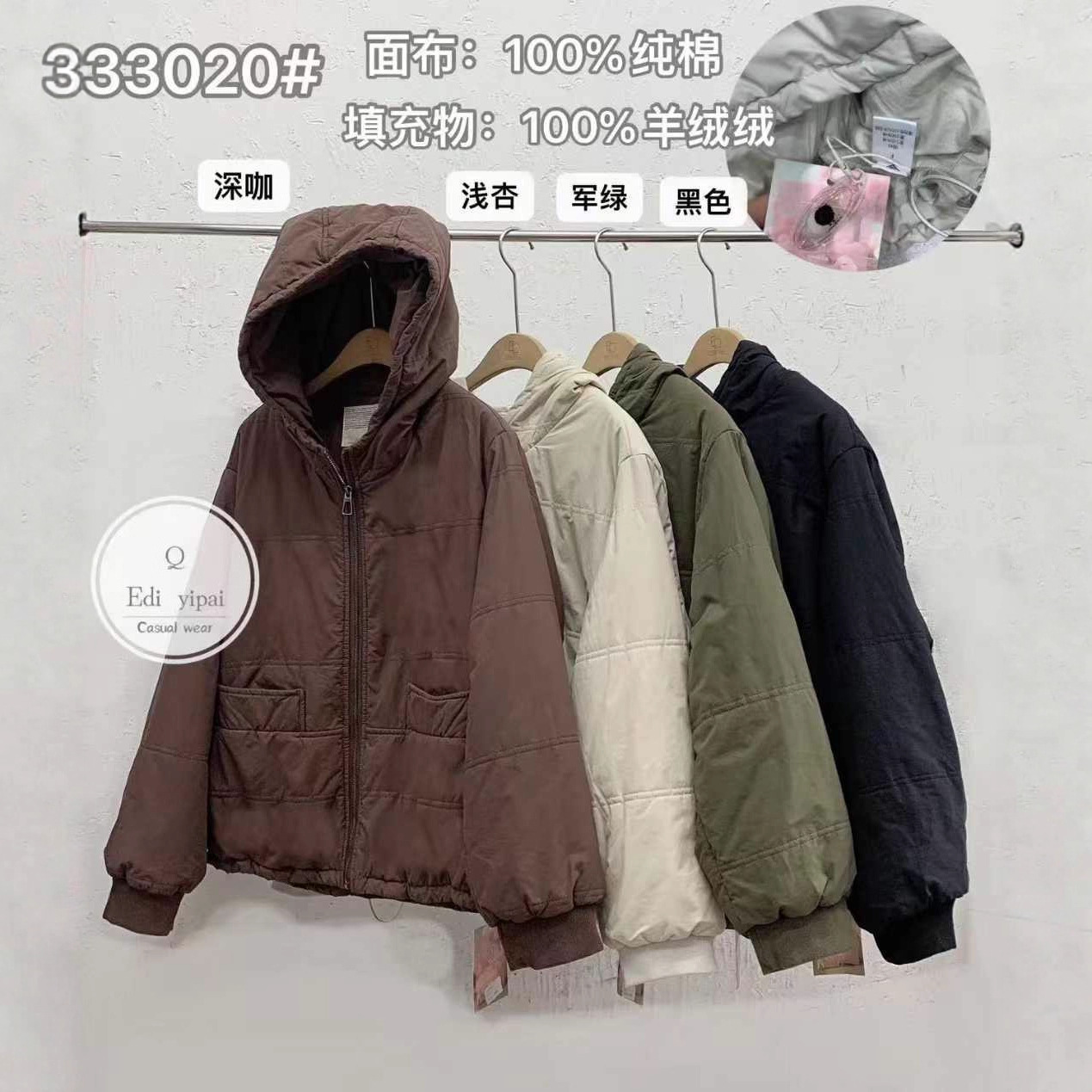 可定制加工时尚宽松连帽拉链棉衣外套加厚保暖羊绒棉服女装批发价
