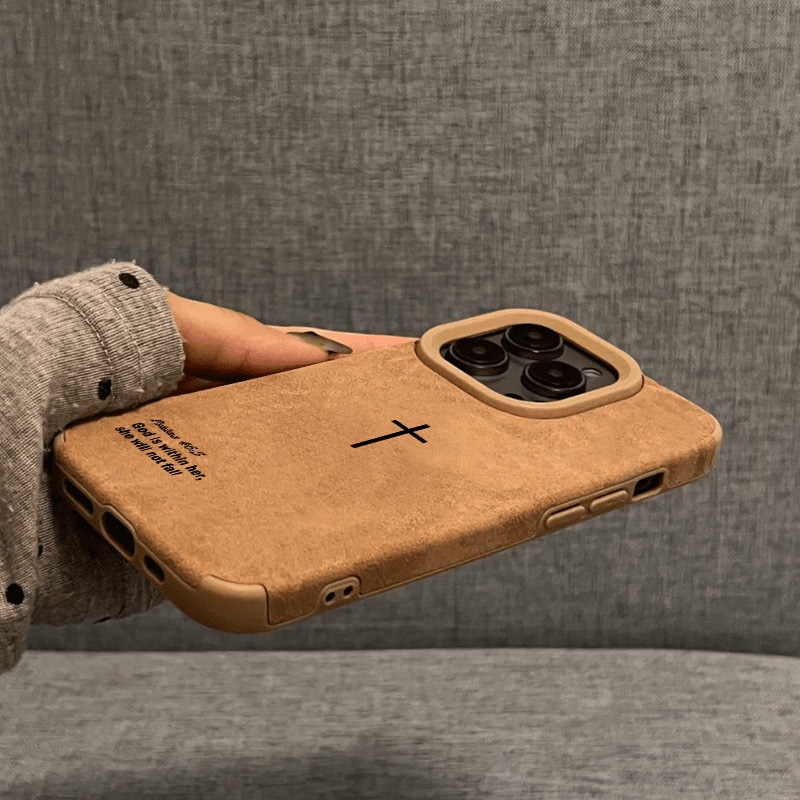 简约十字适用苹果16PROMAX手机壳iPhone15翻毛皮14软壳13高颜值12