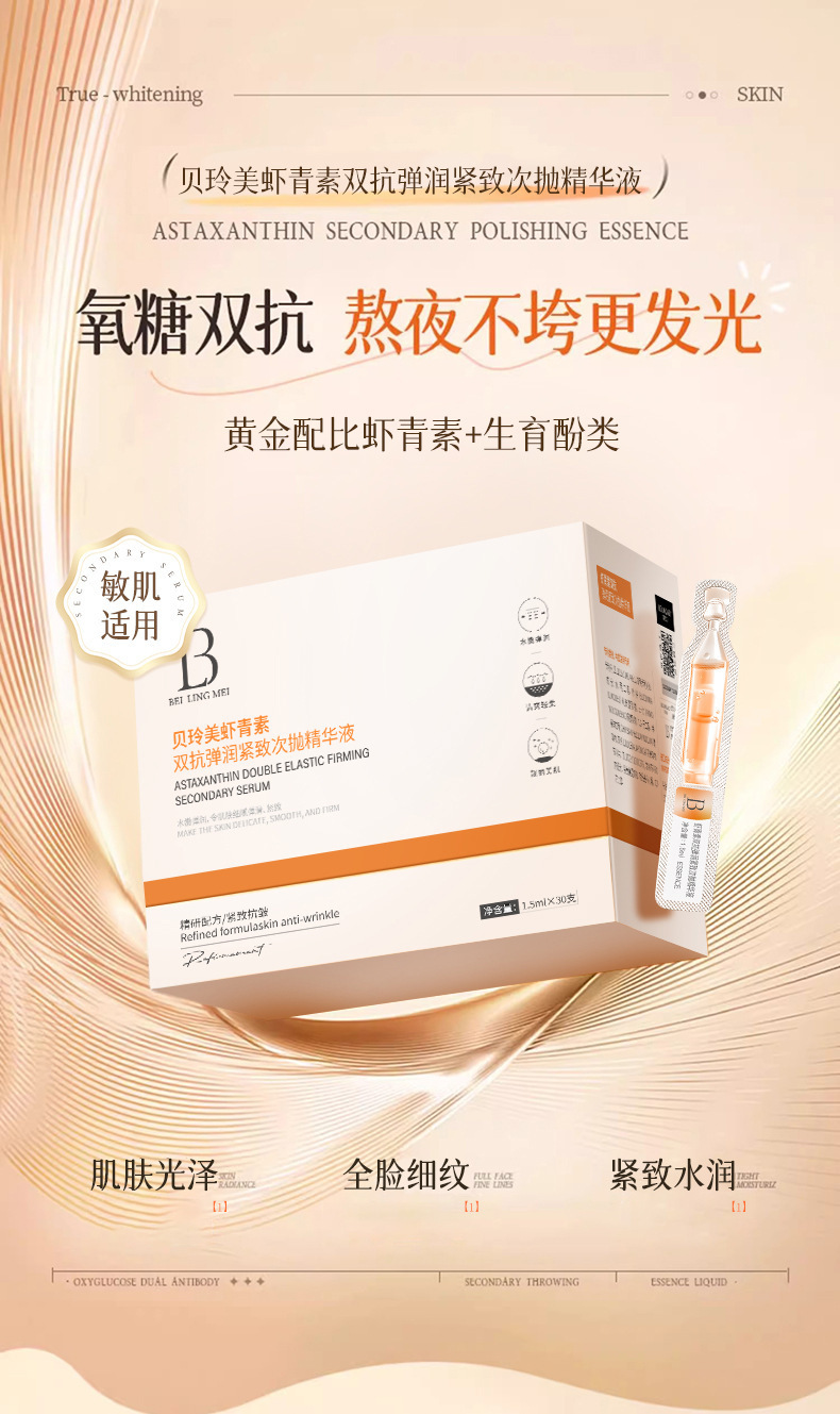 Beilingmei アスタキサンチン ダブル アンチエラスティック ファーミング セカンドパルス エッセンス ライトニング ライン 保湿 抗糖 抗酸化 黄ばみ防止 スキンケア