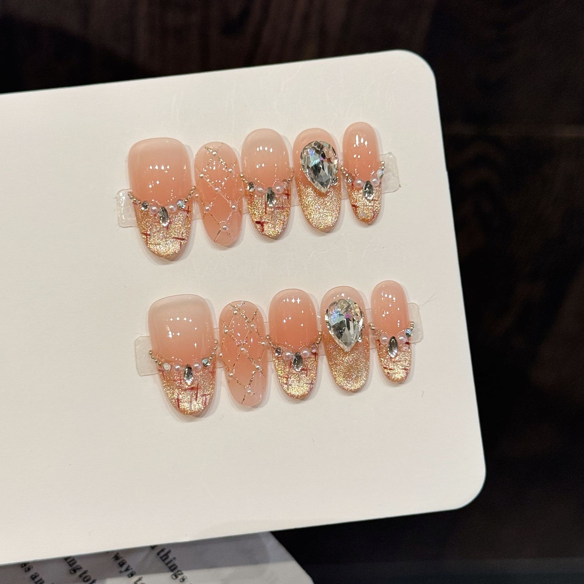 艺禾W系列【鎏粉钻珍】裸粉渐变鎏金碎钻美甲 珍珠装饰轻奢穿戴甲