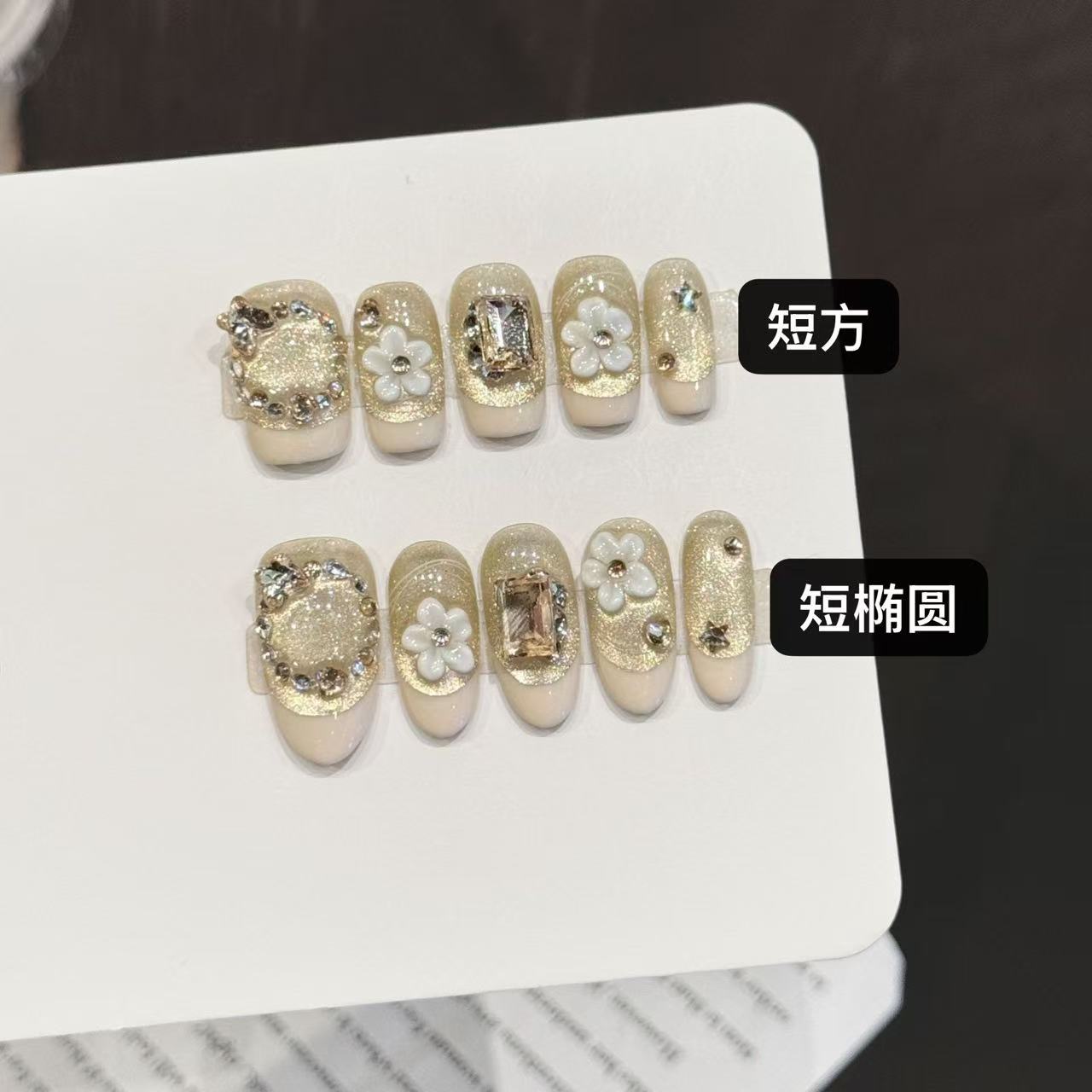 艺禾原创【金钻柔花】香槟金闪立体白花美甲 温柔轻奢手工穿戴甲