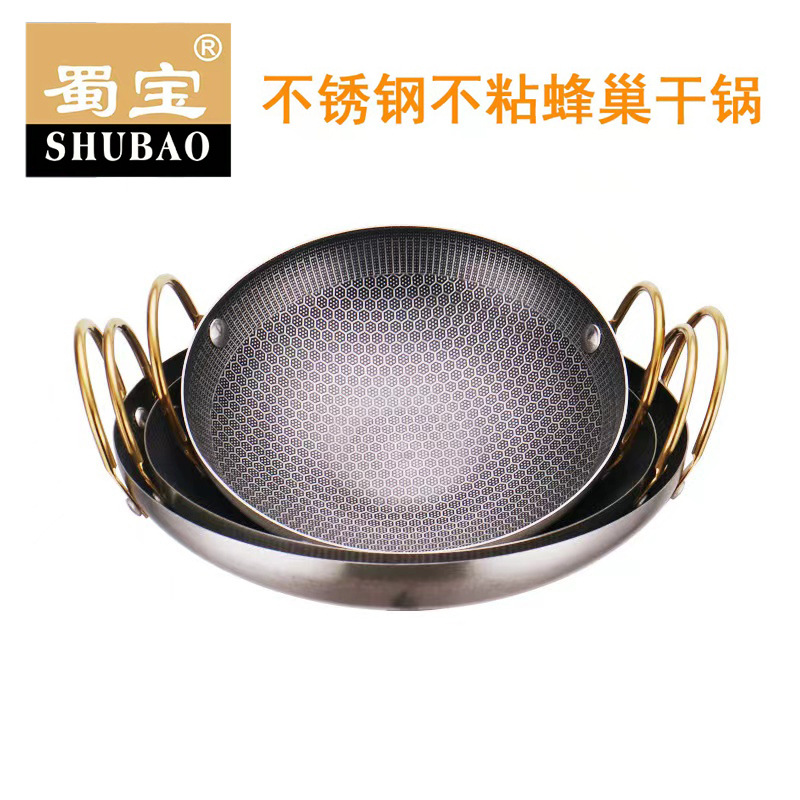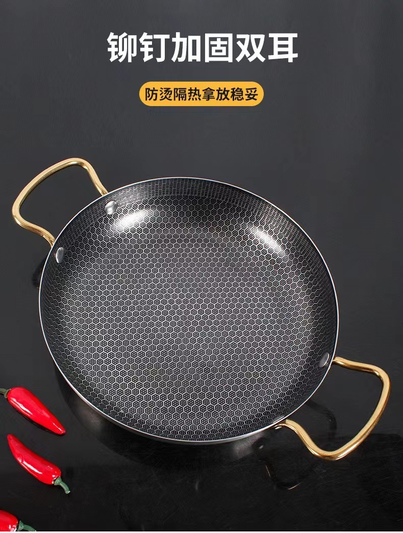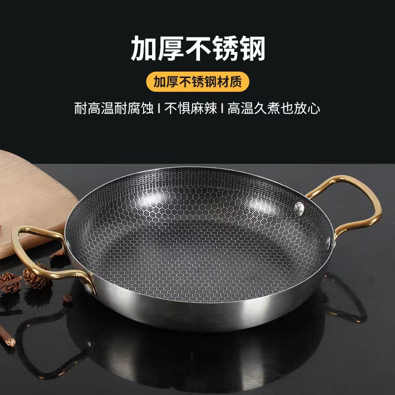 不锈钢不沾蜂窝干锅涂层酒吧鼎双耳加厚小火锅锅仔干锅不粘锅家用