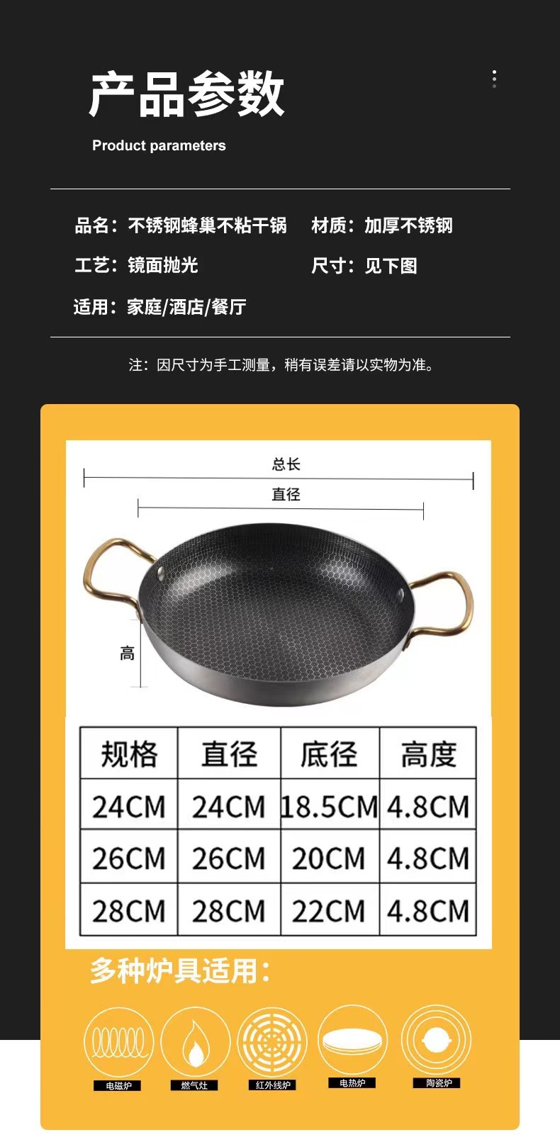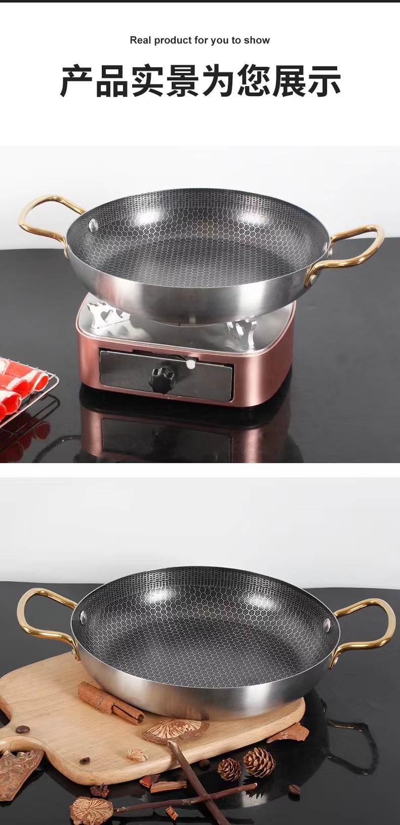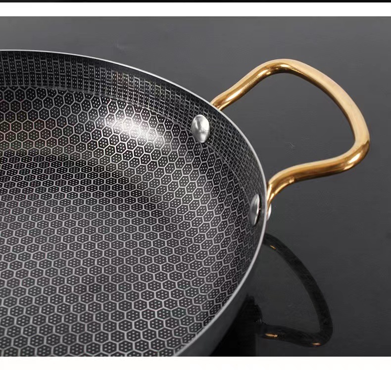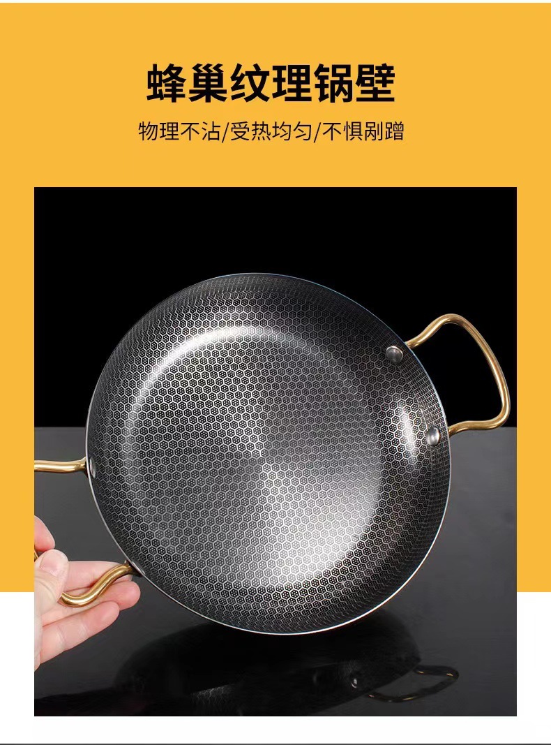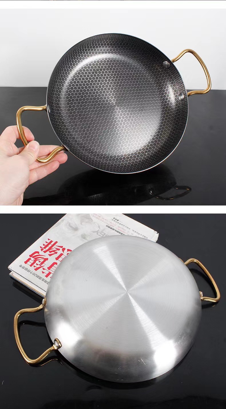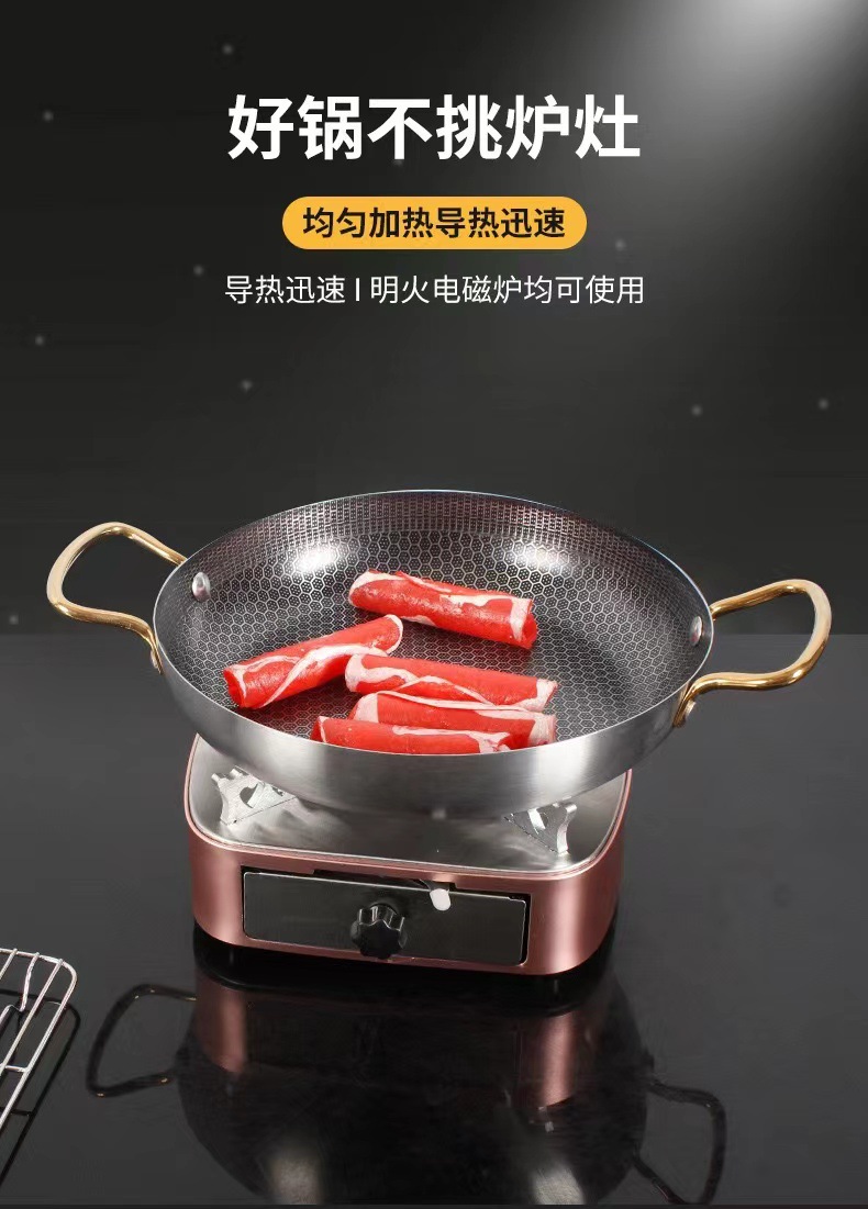 特厚ステンレス製バー鍋、ハニカムコーティングノンスティック、金色両耳鍋、アルコールストーブ専用鍋、鍋仔