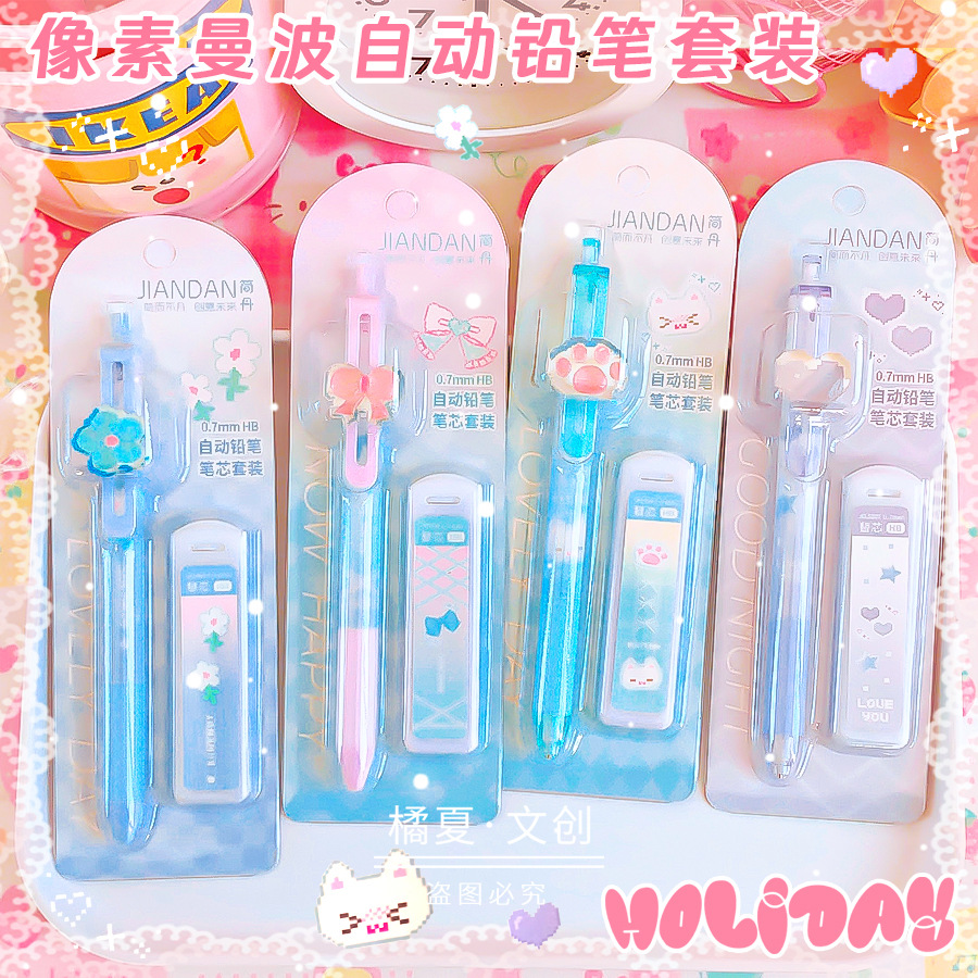 简丹5207像素曼波自动铅笔套装学生用可爱高颜值免削按动铅笔0.5