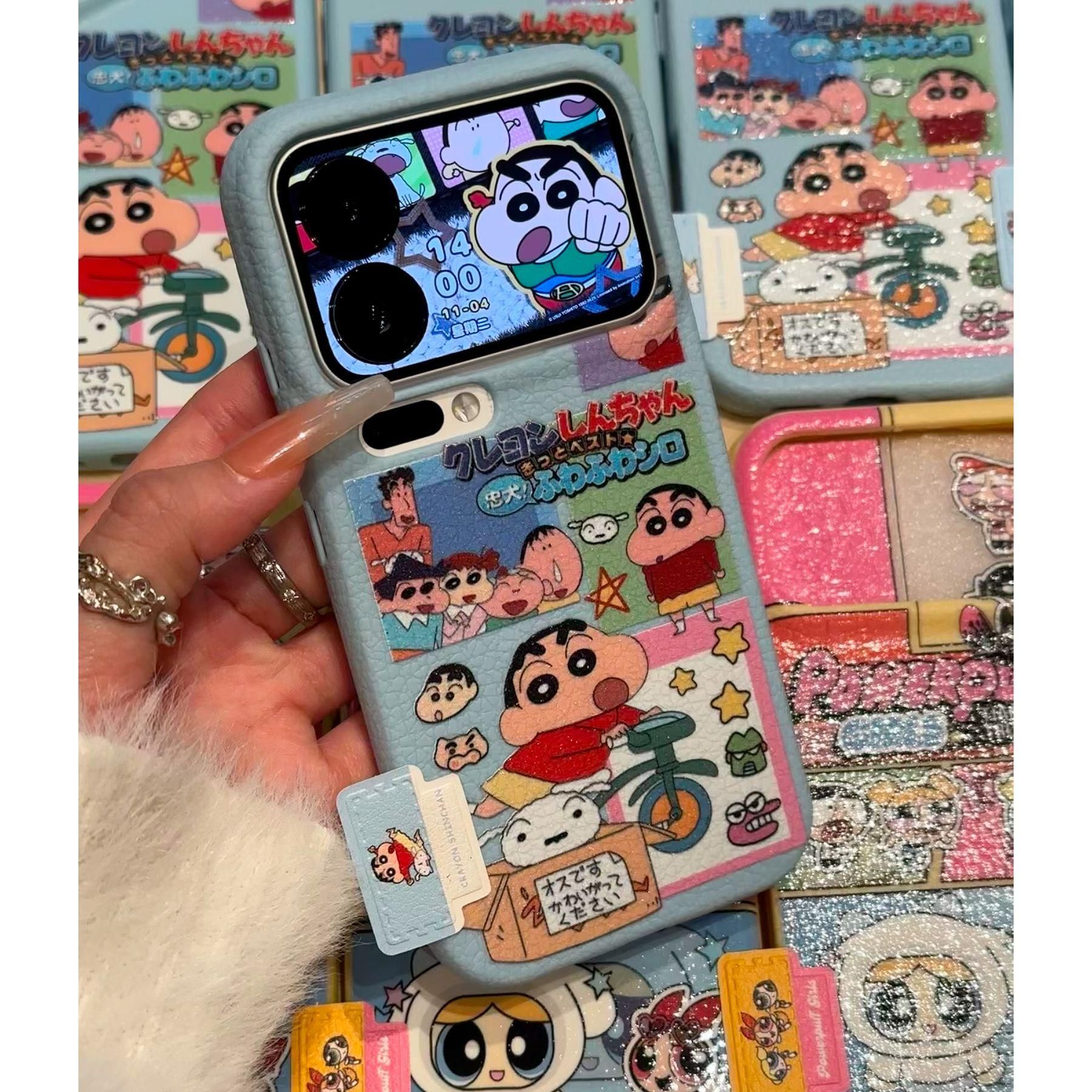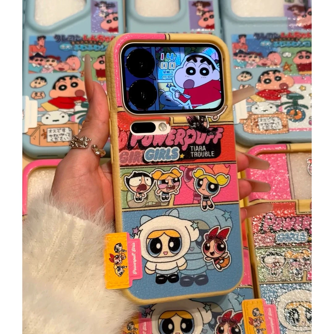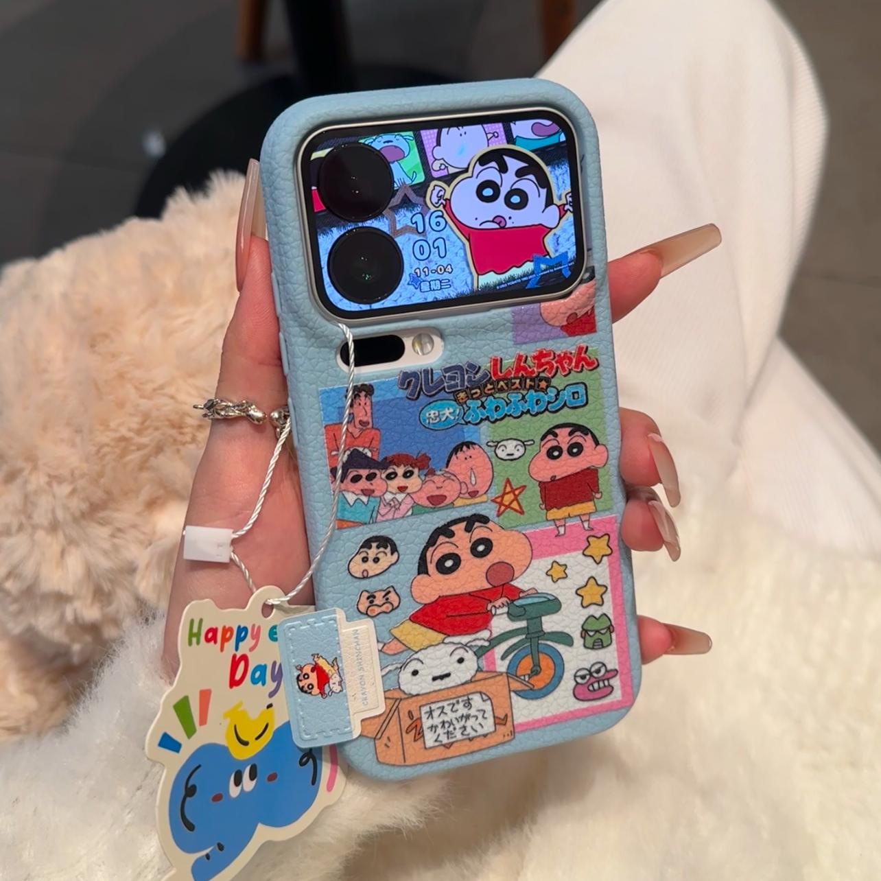 卡通小新女警标签适用苹果17/16皮纹手机壳IP15/14plus可爱13大孔
