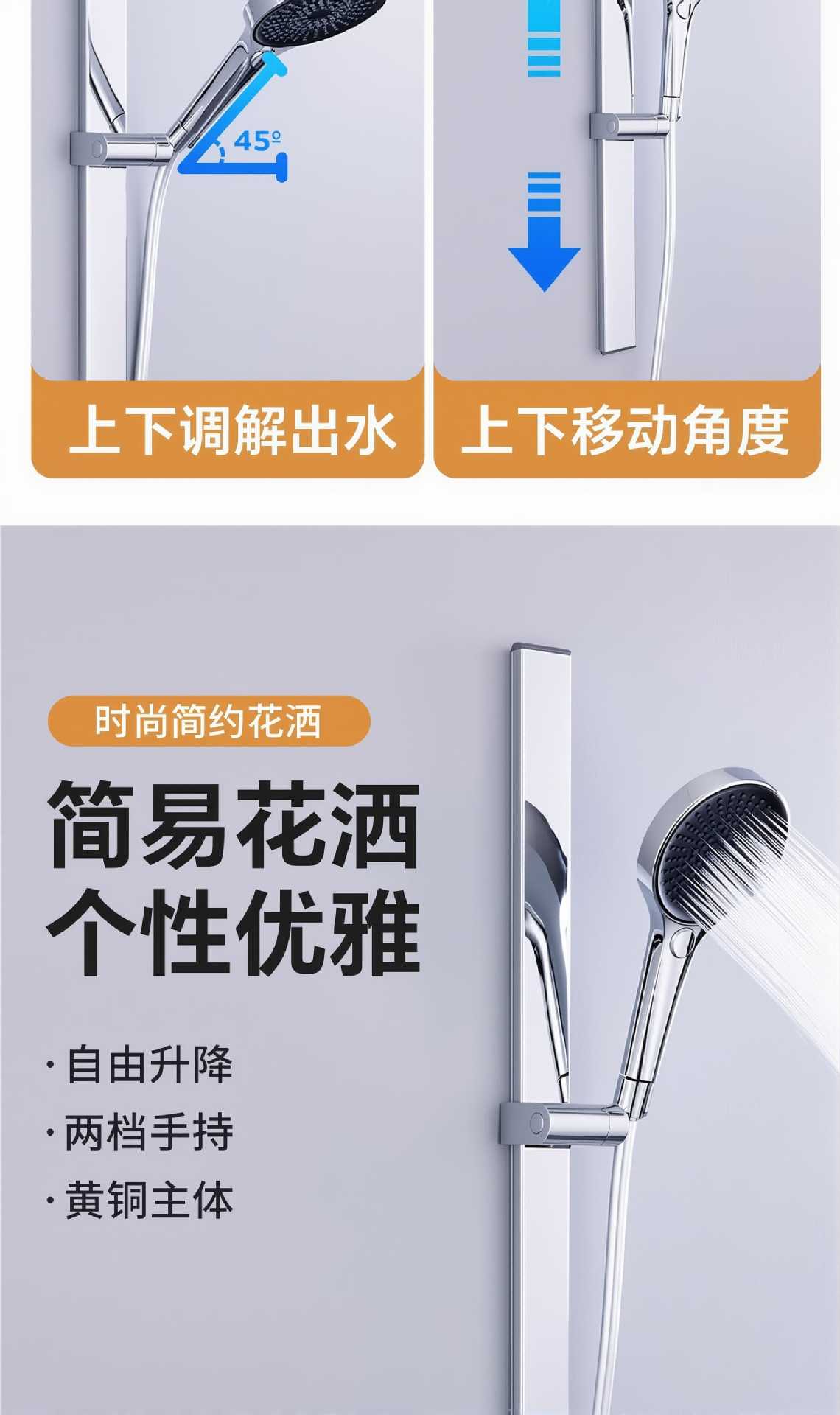 高端淋浴花洒套装家用浴室简易无顶喷卫浴淋浴洗澡增压喷头淋浴器
