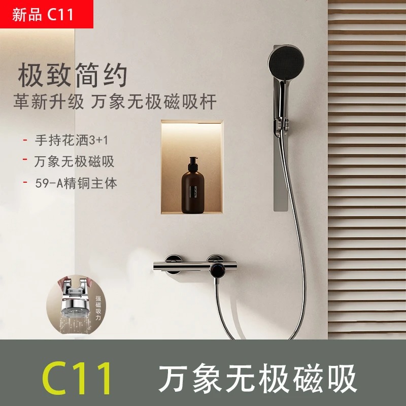 高端纯铜无顶喷淋浴花洒套装简约磁吸增压浴室小户型酒店浴室喷头