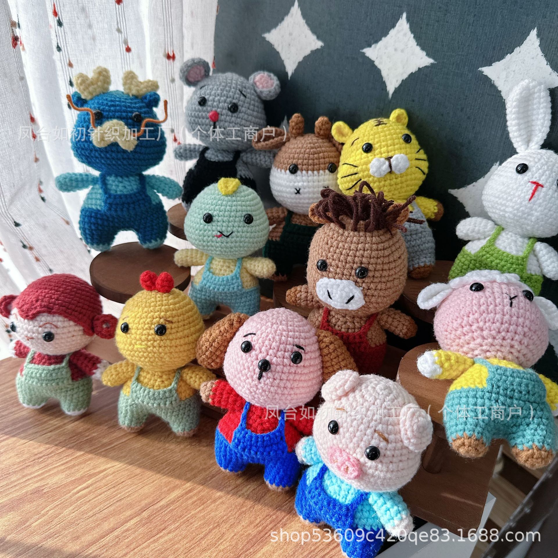 跨境背带系列十二生肖玩偶 织女毛线钩织情侣小挂件,手工钩织小