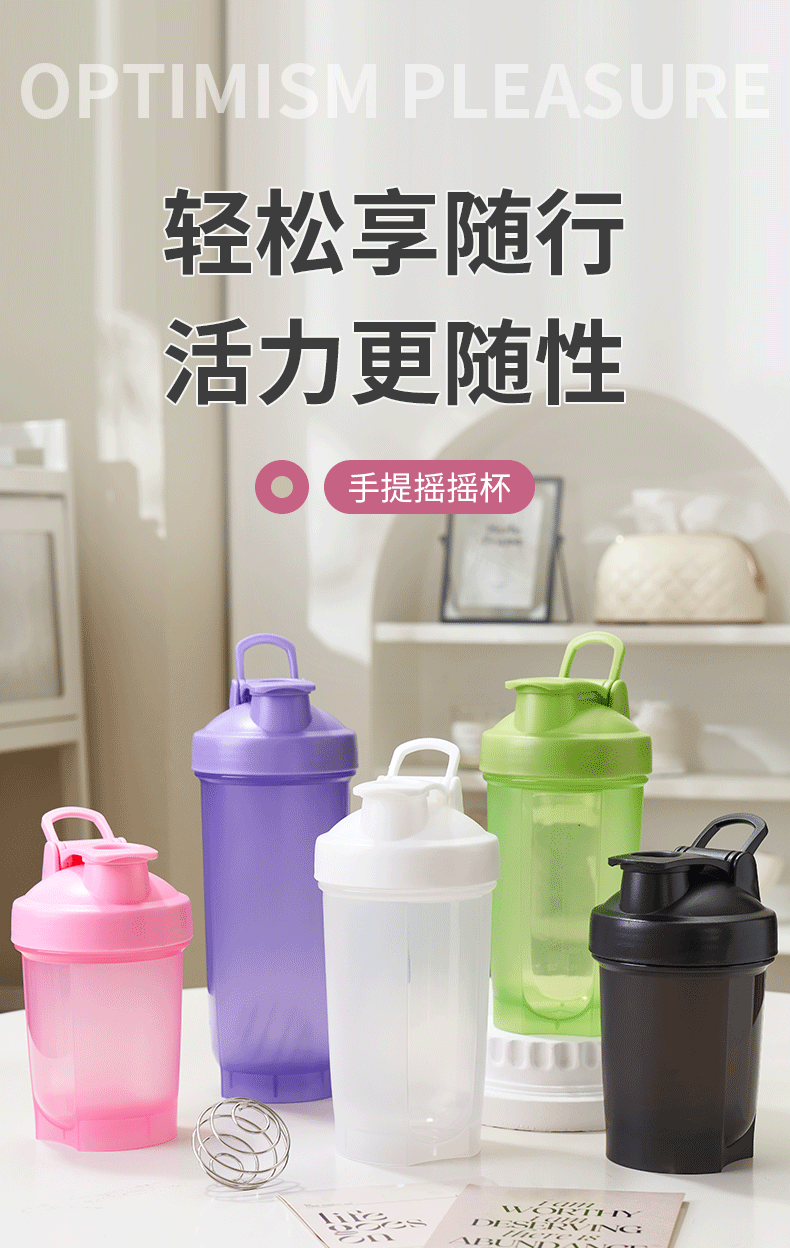 大容量带提手塑料杯500ml便携运动水杯户外健身运动蛋白粉摇摇杯