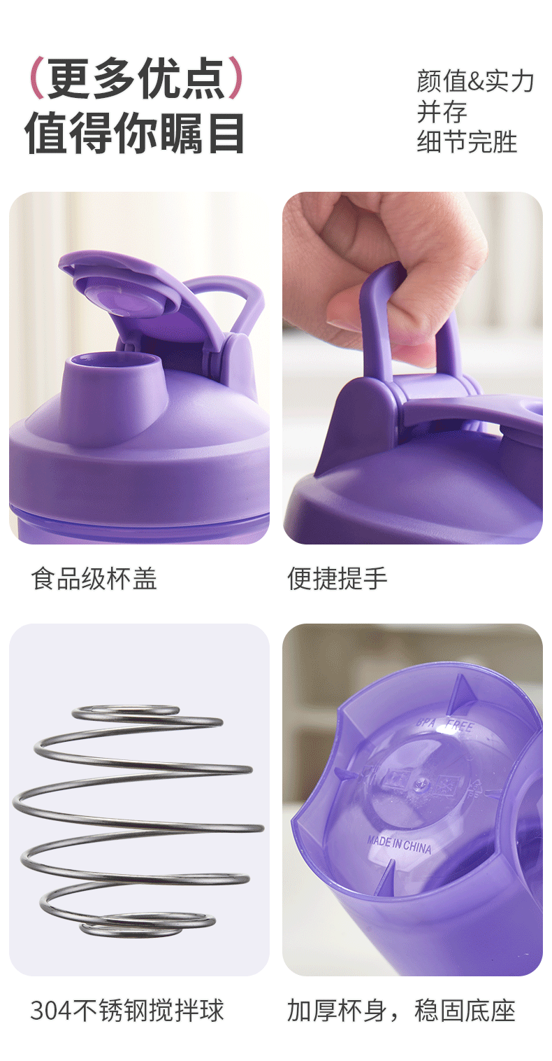 简约密封防漏塑料杯健身运动水杯带提手蛋白粉摇摇杯奶昔搅拌杯