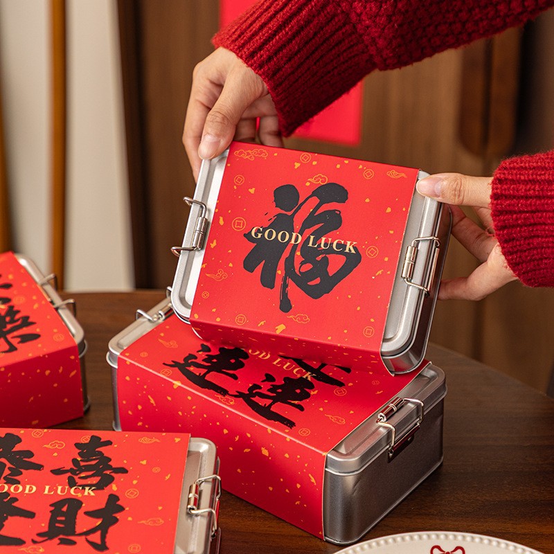 2026新年饼干包装盒牛轧糖雪花酥坚果年货礼盒糖果糕点礼品空铁盒