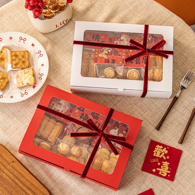 2026年新年クッキー菓子携帯箱雪花餅もち米船窓付きギフト包装箱蛇年常温箱