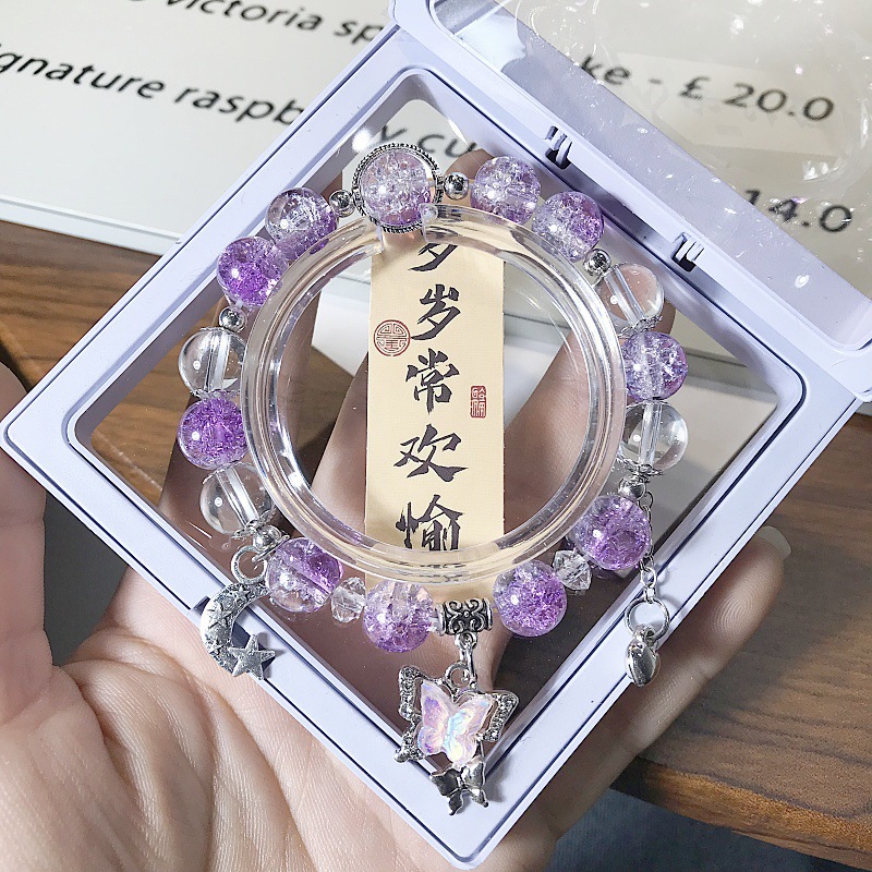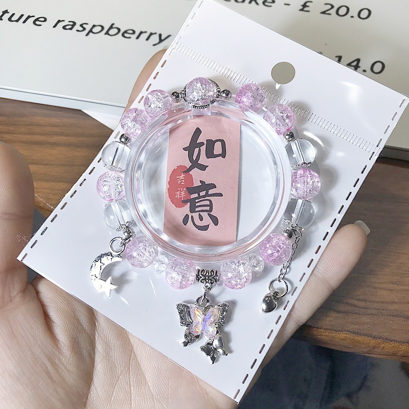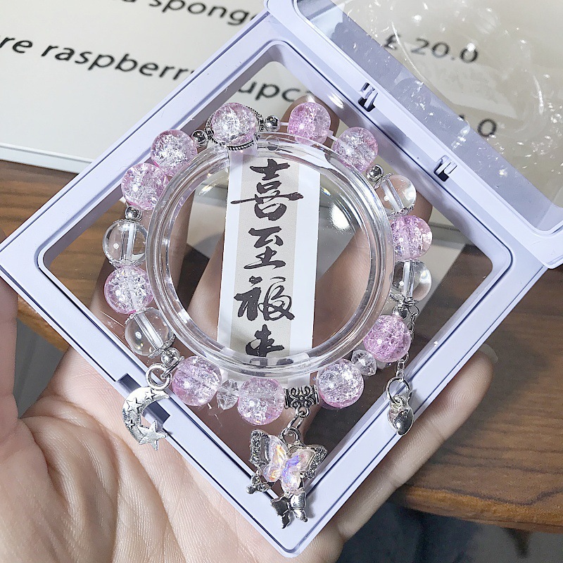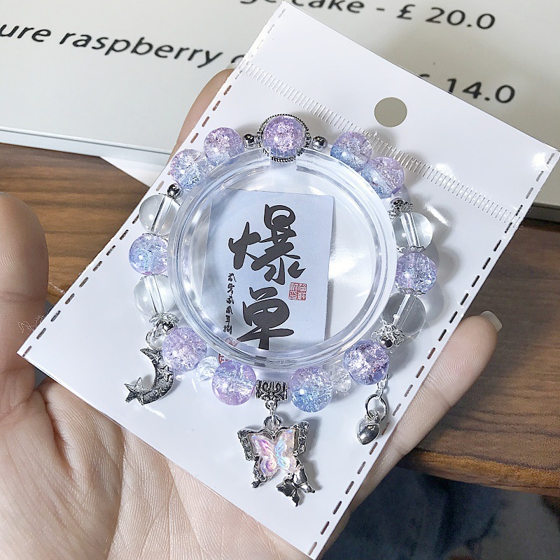 森系蝴蝶琉璃手链手工串珠珠子女生ins风小众闺蜜手串冰裂珠串珠