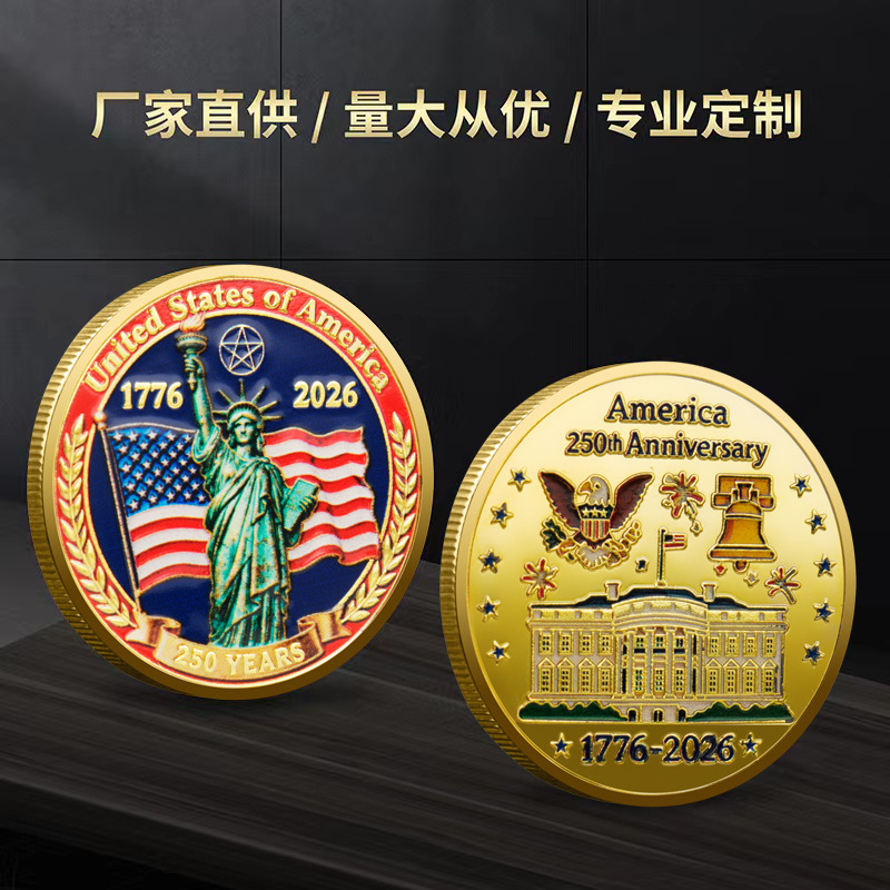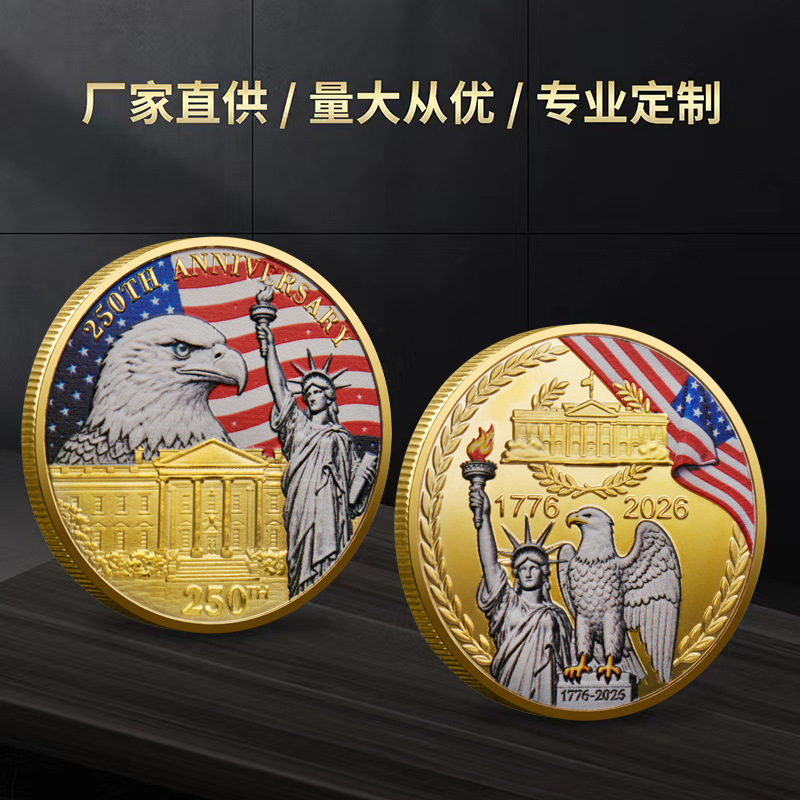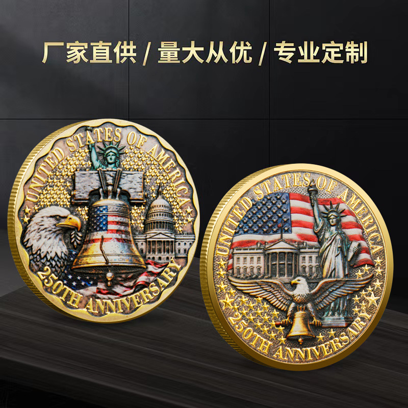跨境 美国250周年纪念币 军事币 挑战币 金属浮雕彩印纪念章礼品