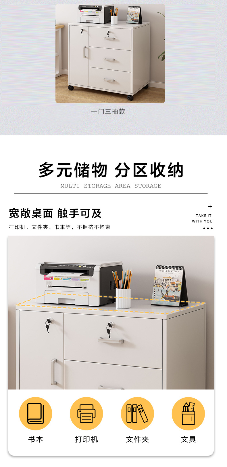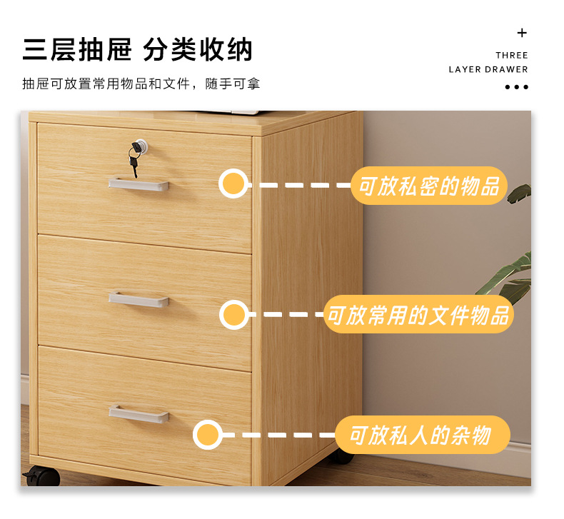 办公室文件柜木质带锁抽屉收纳柜小柜子桌下矮柜储物柜资料档案柜