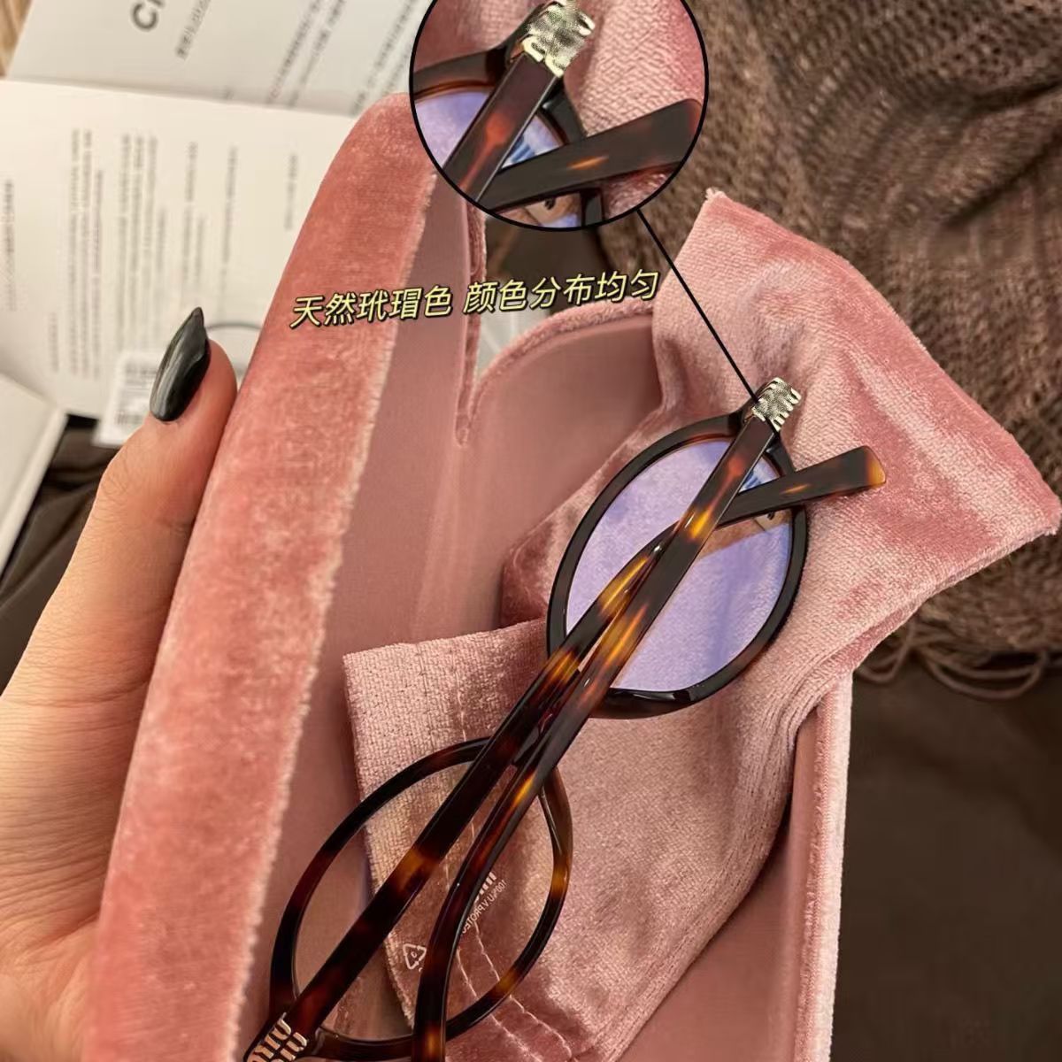ミウミウVMU02Vメガネフレーム、張元英プレーンメガネフレーム、板材エレガント女神メガネフレーム