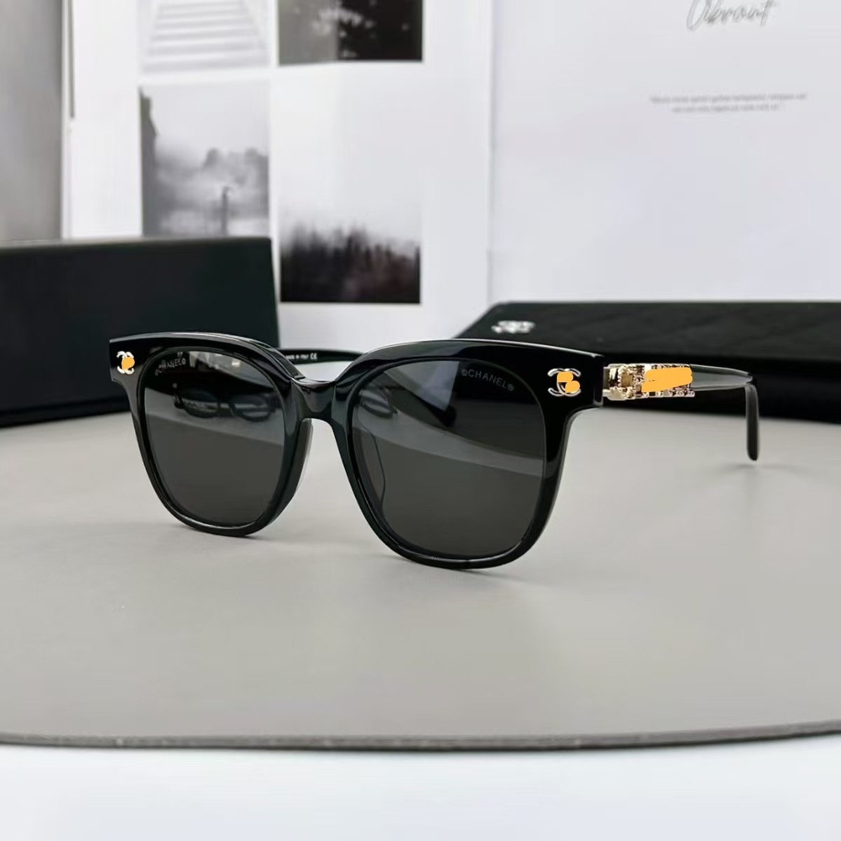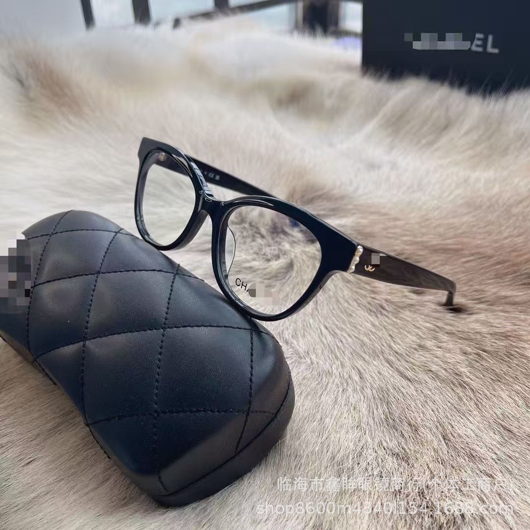2025年新作 シャネル風特大フレーム ノーマルレンズ メガネ脚に文字入り 同型ネット人気 素顔メガネ 卸売メガネフレーム