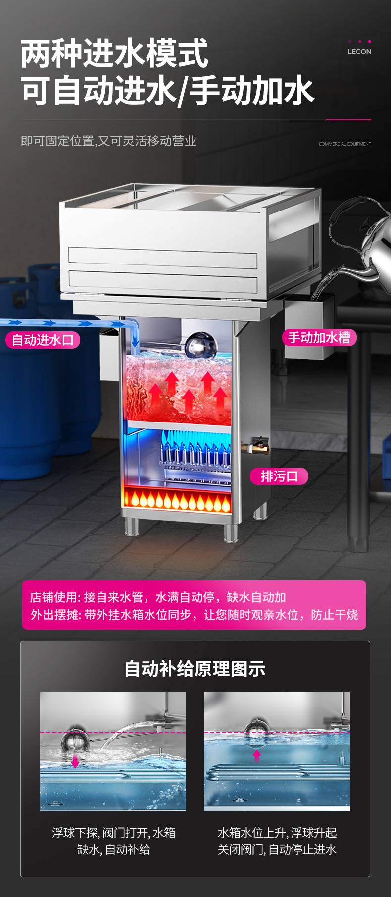 乐创全自动肠粉机器抽屉肠粉机广东蒸肠粉机35L水箱摆摊燃气蒸箱