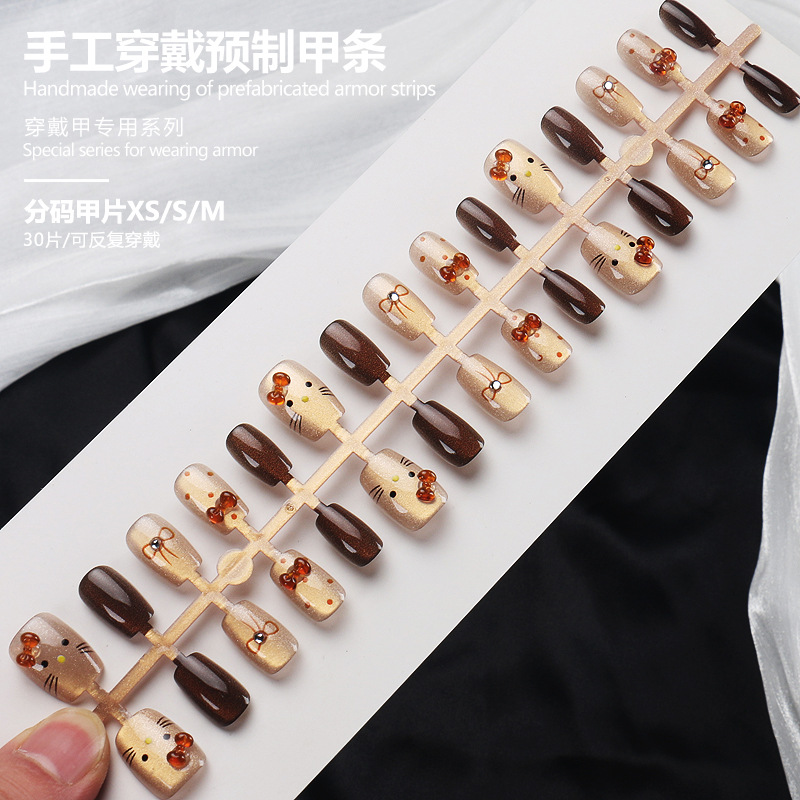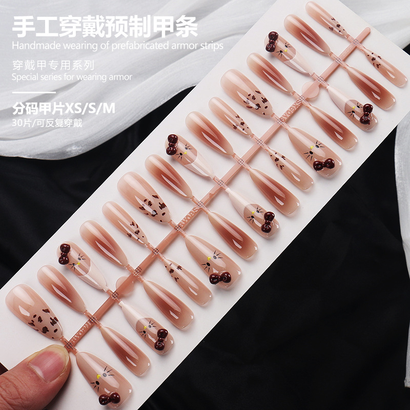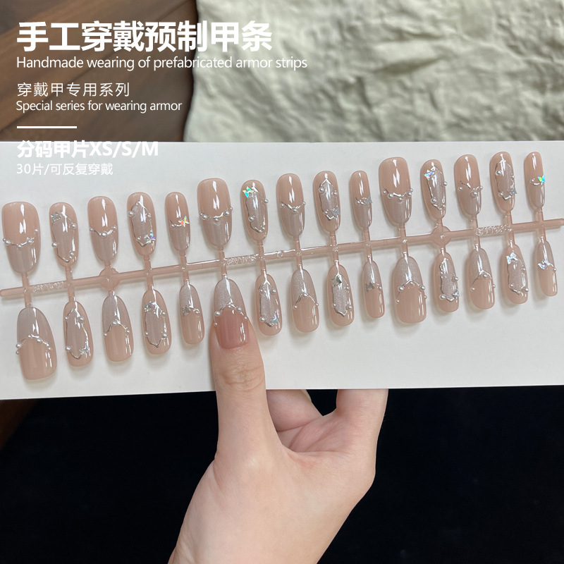 手工穿戴甲预制甲条分码30片可反复穿戴裸粉渐变猫眼长型美甲甲片