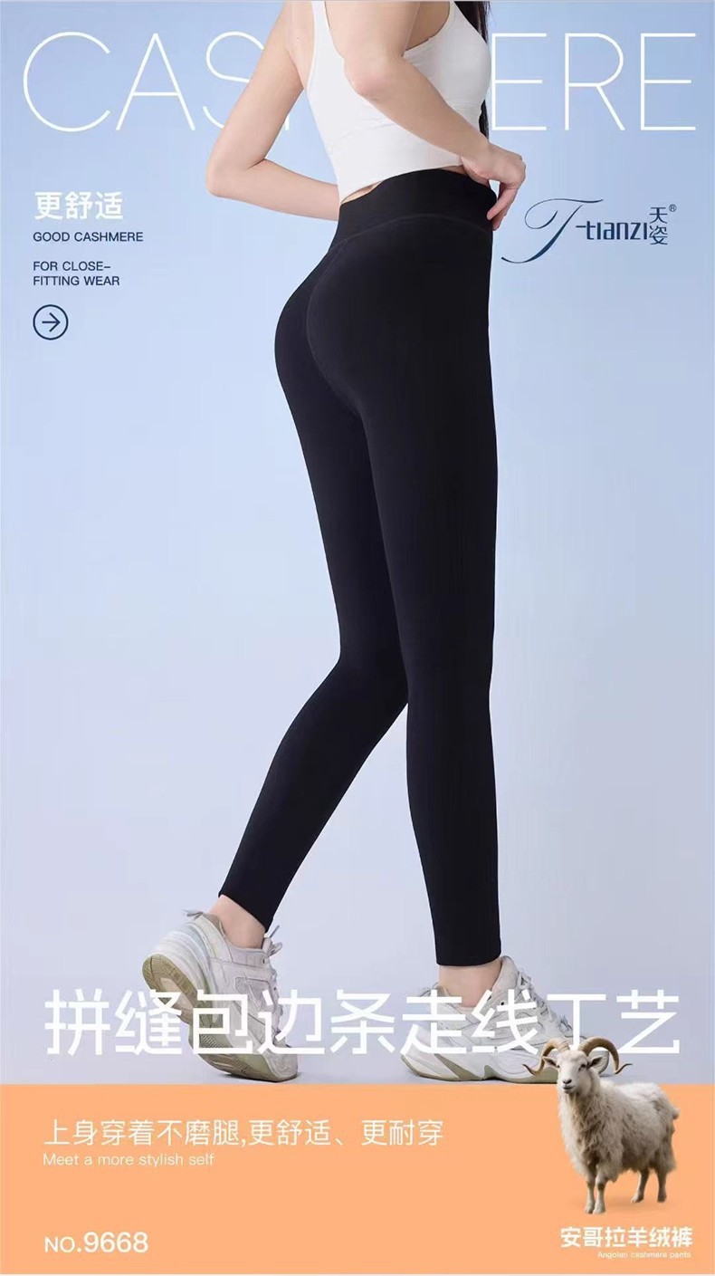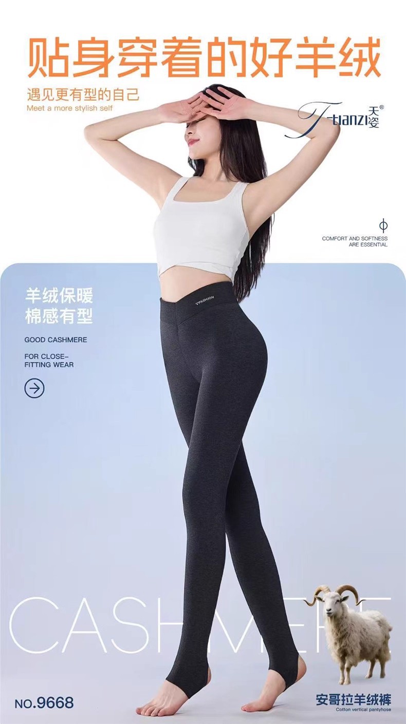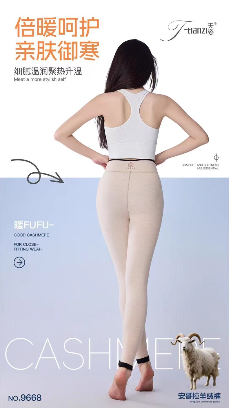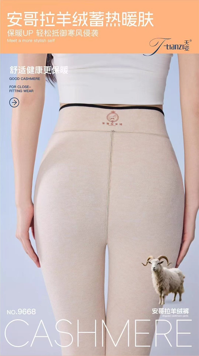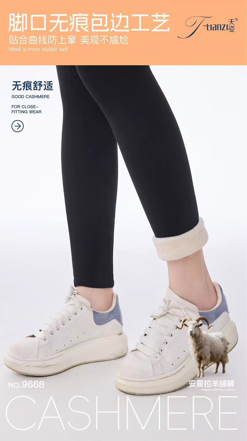 天姿390克冬季打底保暖裤加绒外穿女九分加厚高弹羊绒棉裤袜9668