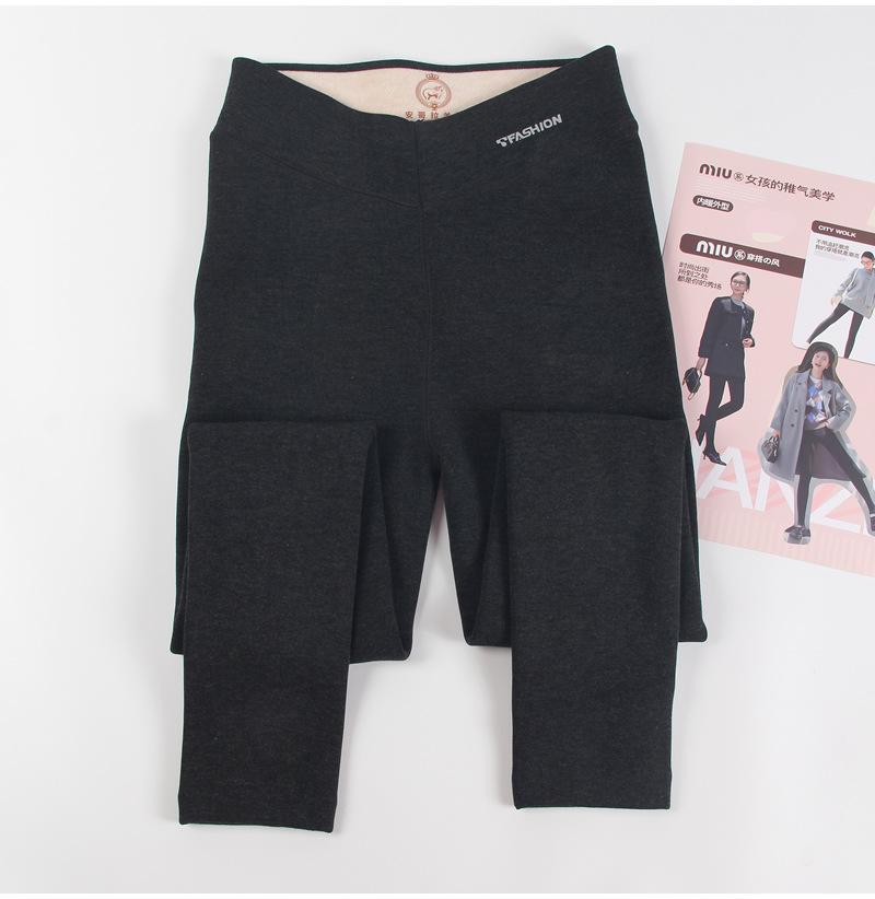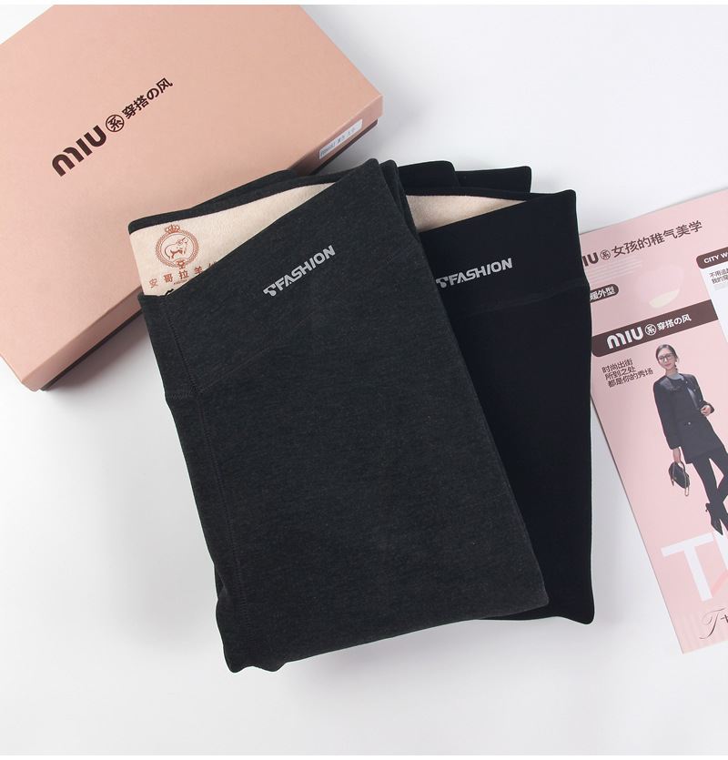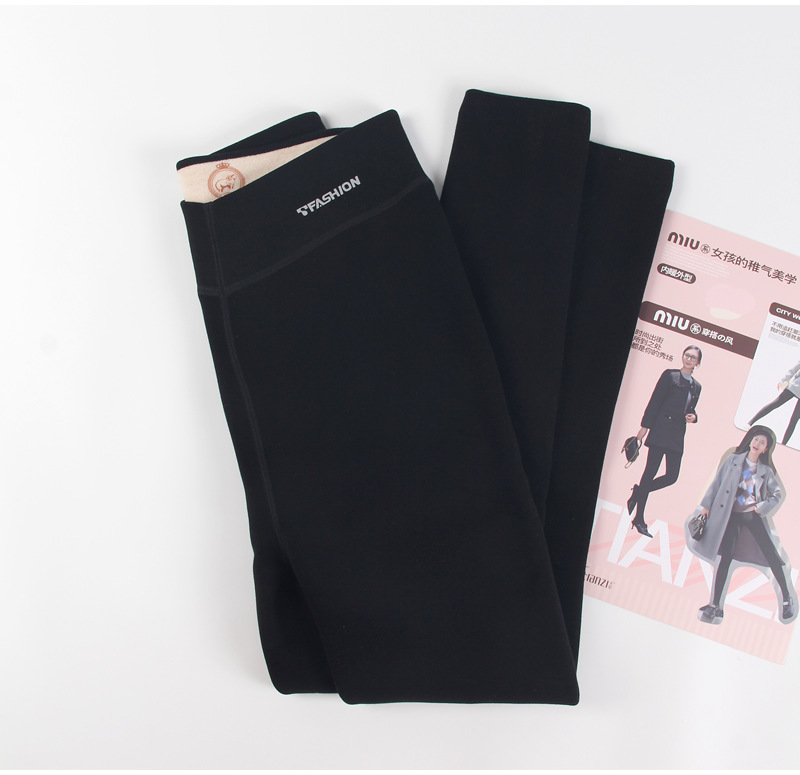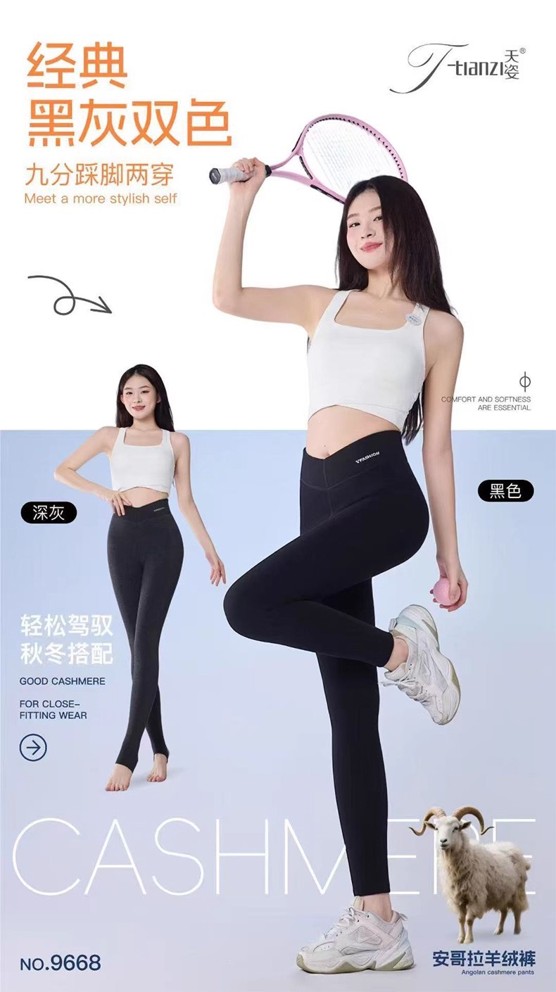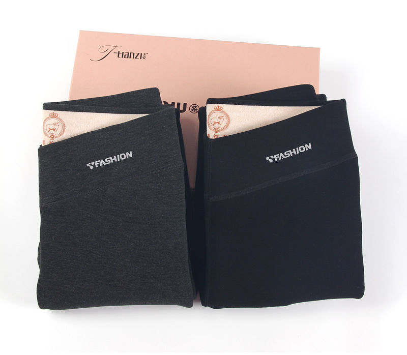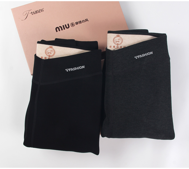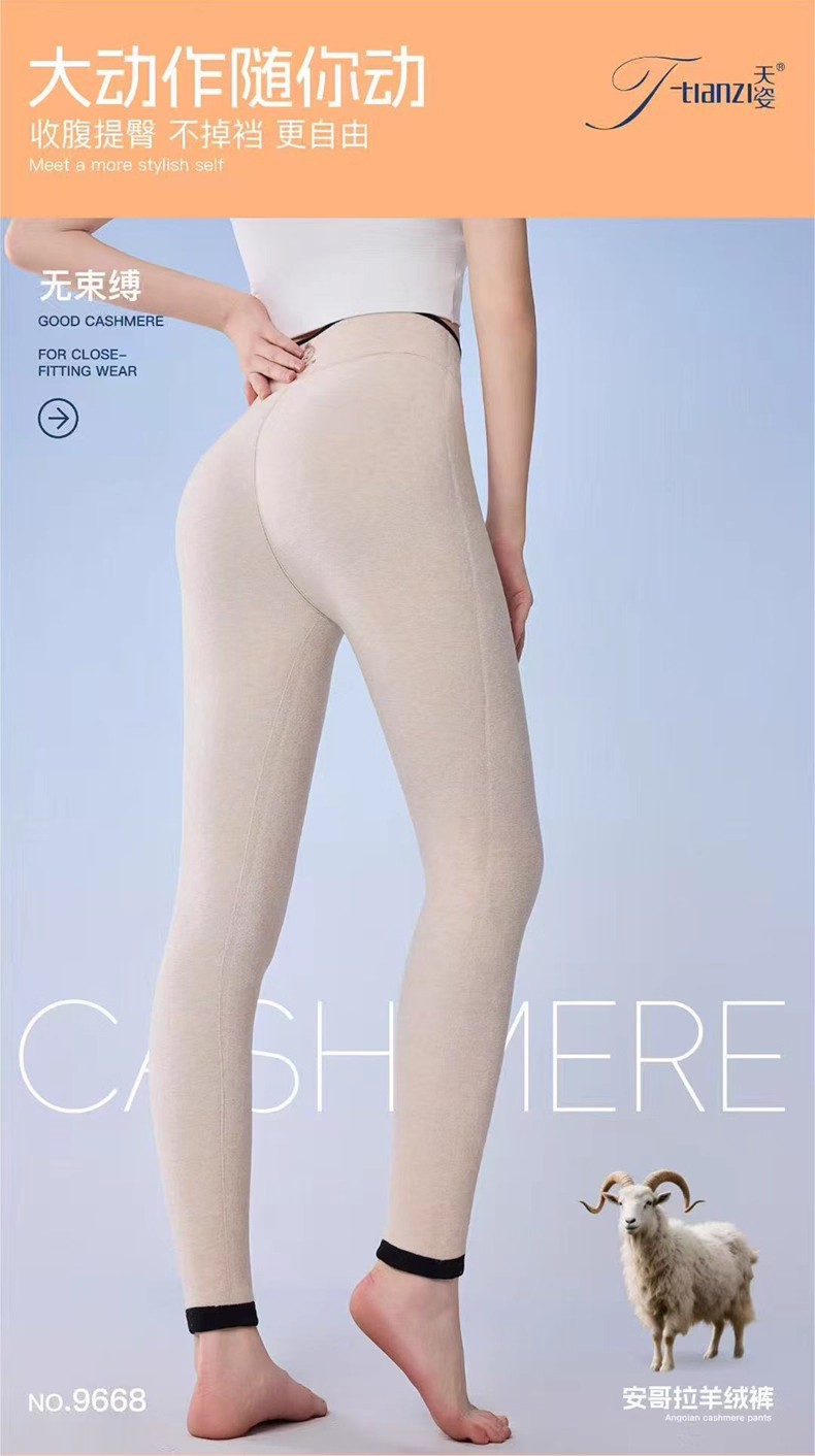 天姿390克冬季打底保暖裤加绒外穿女九分加厚高弹羊绒棉裤袜9668