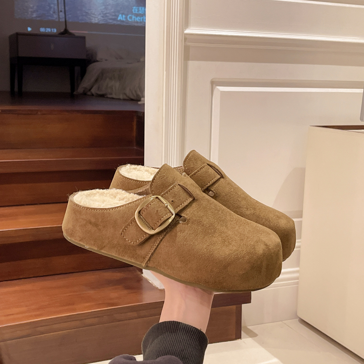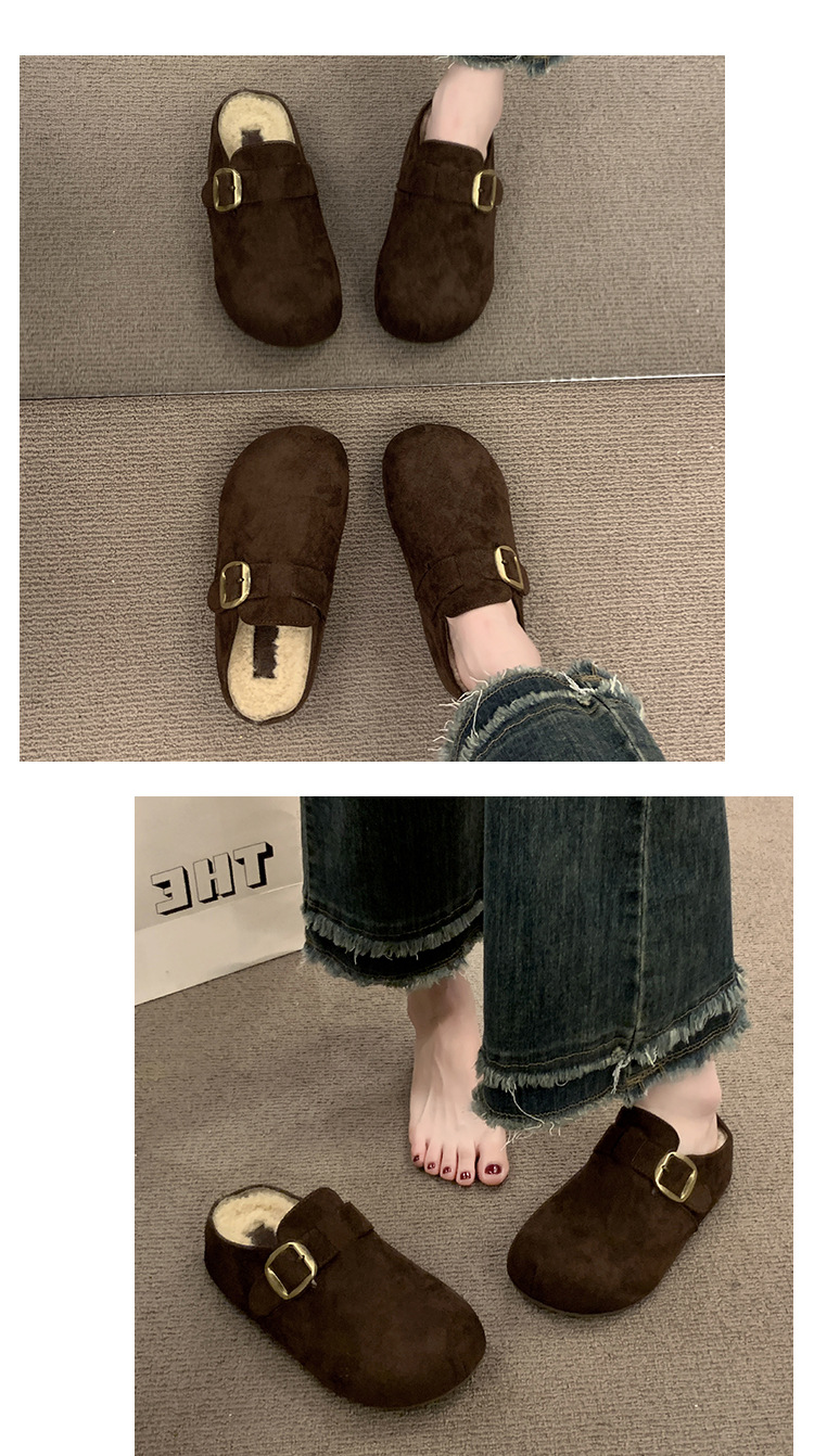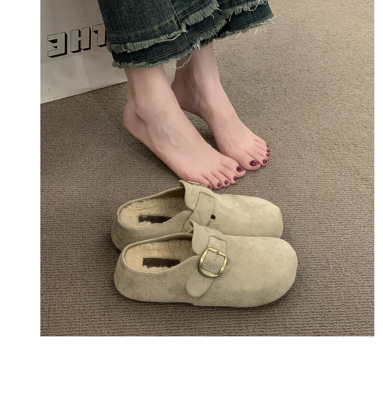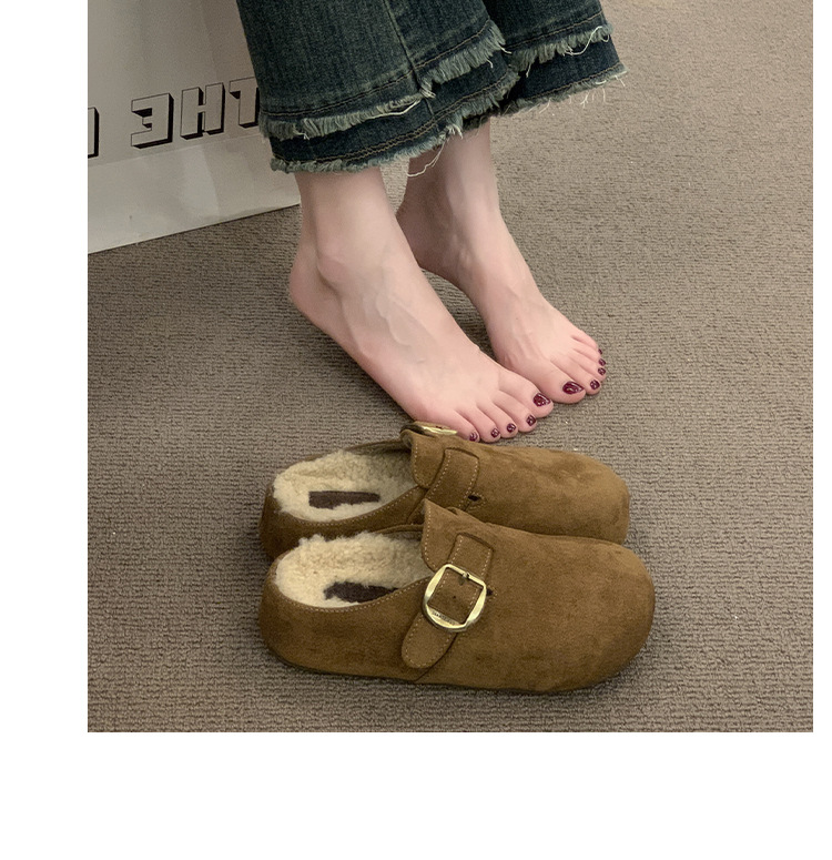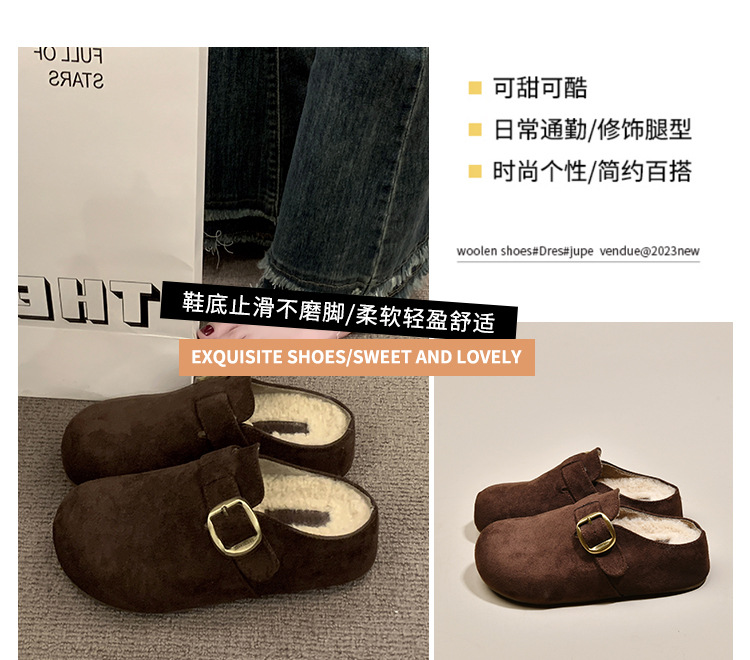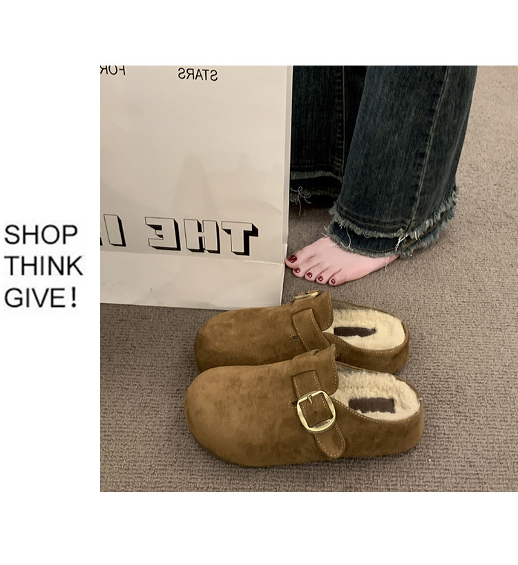 厚底勃肯鞋女2025秋冬新款加绒一脚蹬包头半拖鞋外穿毛毛雪地棉拖